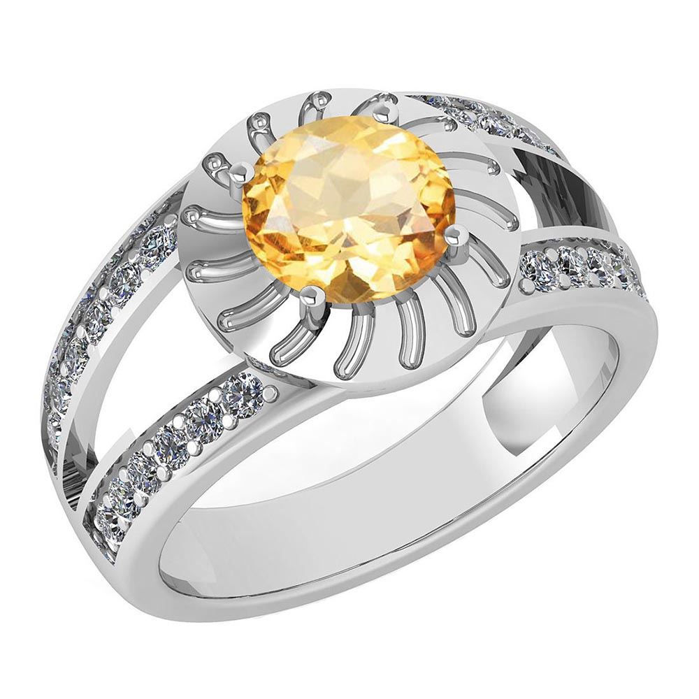 Certified 1.58 Ctw Citrine And Diamond Wedding/Engageme **|**|** Center Stone Approx Weight ; 1.25 Ctw (1 Pcs Round) Center Stone Color: Citrine Stone Setting ; Prong Side Stone (24 Pcs Round Diamond) 0.33 ctw Side Stone Color: White G-H Diamond Side Stone Setting: Prong Stone Clarity: VS/SI1 Metal Color: White Gold Metal Weight: Approx 3.90 Gram 14K White Gold Halo Ring