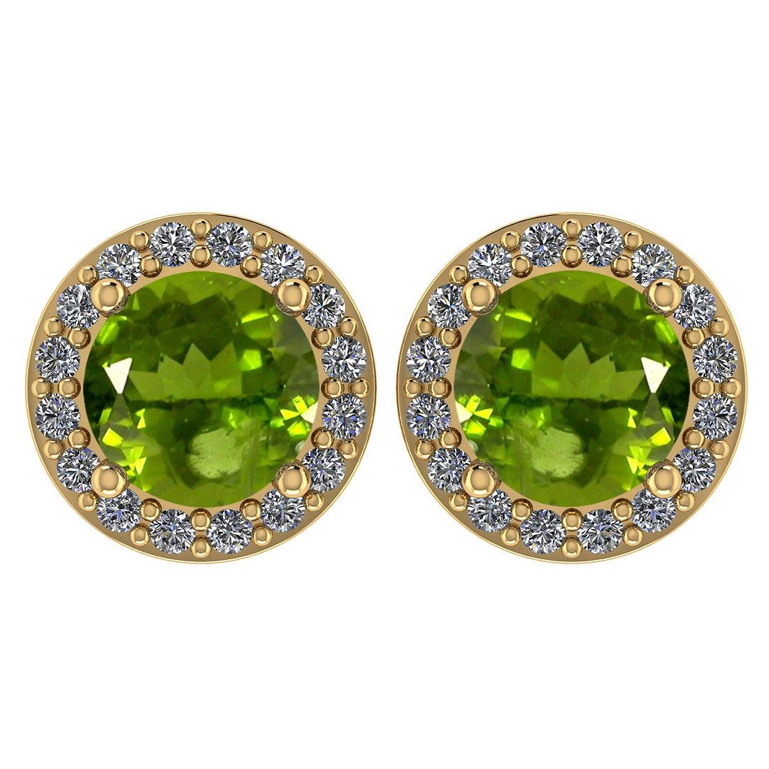 Certified 1.6 Ctw Peridot And Diamond 14k Yellow Gold H **|**|** Center Stone Weight ; 0.90 Ctw (2 Pcs Round) Center Stone Color: Peridot Center Stone Setting ; Prong Side Stone 0.16 ctw Side Stone Color: White J-K Diamond Side Stone Setting: Prong Side Stone Clarity: VS/SI1 Metal Color Yellow Gold Metal Weight : Approx 1.38 Gram 14K Yellow Gold Halo Stud Earring