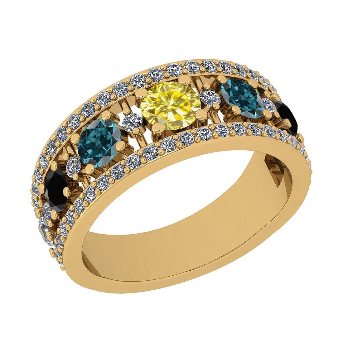 Certified 1.67 Ctw I2/I3 Multi Treated Fancy Blue,Black **|**|** Multi Diamond Approx Weight: 1.07 Ctw (Round Cut) Multi Diamond Color: Treated Fancy Blue,Black,Yellow Stone Setting: Prong Side Stone 0.60 Ctw Side Stone Color: J-K Stone Clarity: I2/I3 Stone Setting: Prong Metal Approx Weight: 6.40 Gram 14K Yellow Gold Wedding Band Ring Size: 6 (Free Sizing Avialable 4.5 - 9)