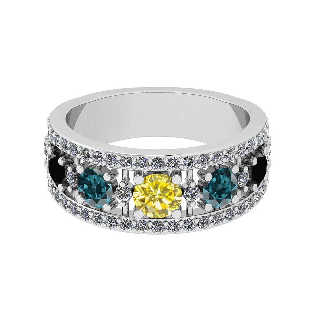 Certified 1.67 Ctw I2/I3 Multi Treated Fancy Blue,Black **|**|** Multi Diamond Approx Weight: 1.07 Ctw (Round Cut) Multi Diamond Color: Treated Fancy Blue,Black,Yellow Stone Setting: Prong Side Stone 0.60 Ctw Side Stone Color: J-K Stone Clarity: I2/I3 Stone Setting: Prong Metal Approx Weight: 6.40 Gram 14K White Gold Wedding Band Ring Size: 6 (Free Sizing Avialable 4.5 - 9)