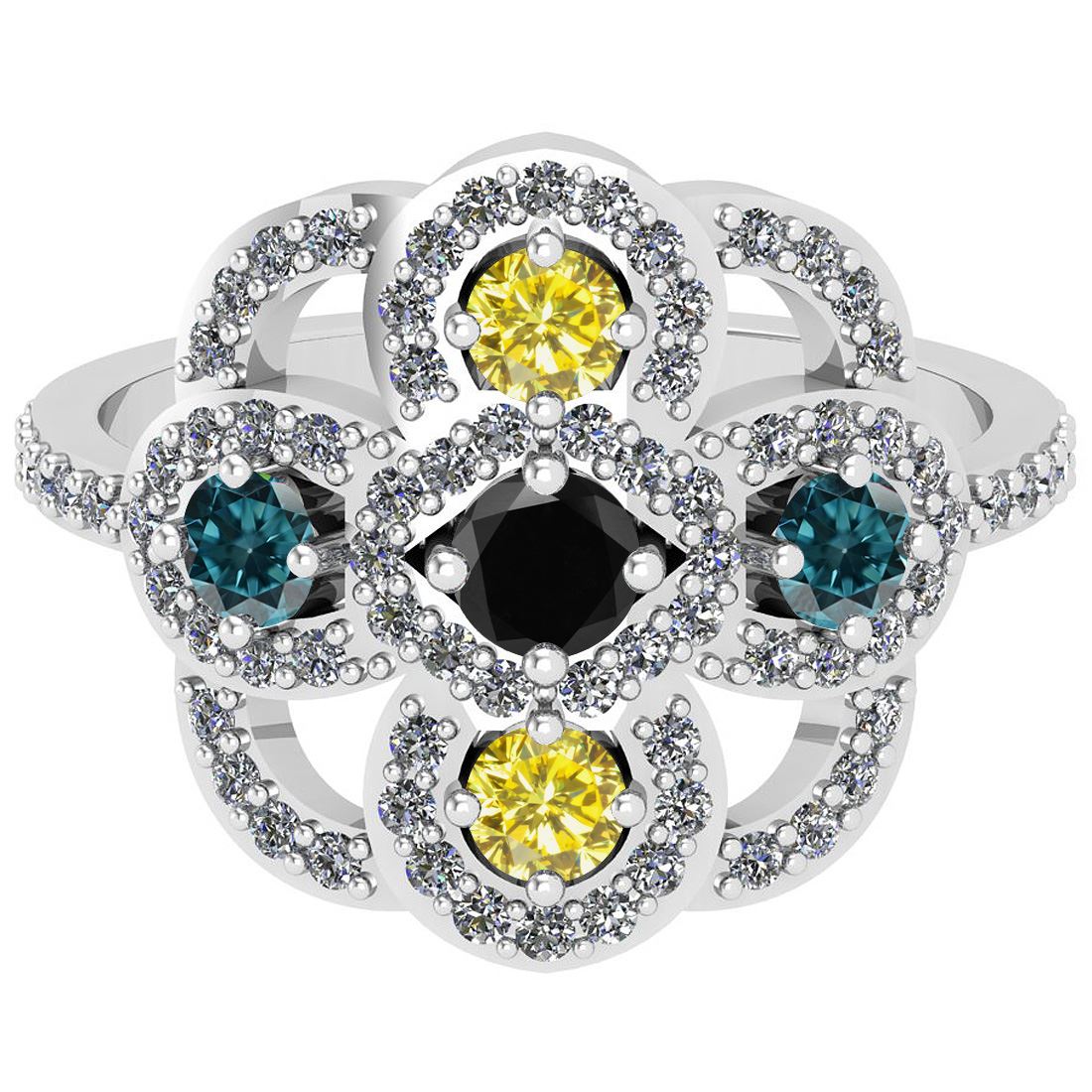 Certified 1.73 Ctw I2/I3 Multi Treated Fancy Blue,Black **|**|** Multi Diamond Approx Weight: 1.25 Ctw (Round Cut) Multi Diamond Color: Treated Fancy Blue,Black,Yellow Stone Setting: Prong Side Stone 0.48 Ctw Side Stone Color: J-K Stone Clarity: I2/I3 Stone Setting: Prong Metal Approx Weight: 7.00 Gram 14K White Gold Ring Size: 6 (Free Sizing Avialable 4.5 - 9)