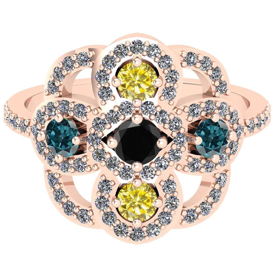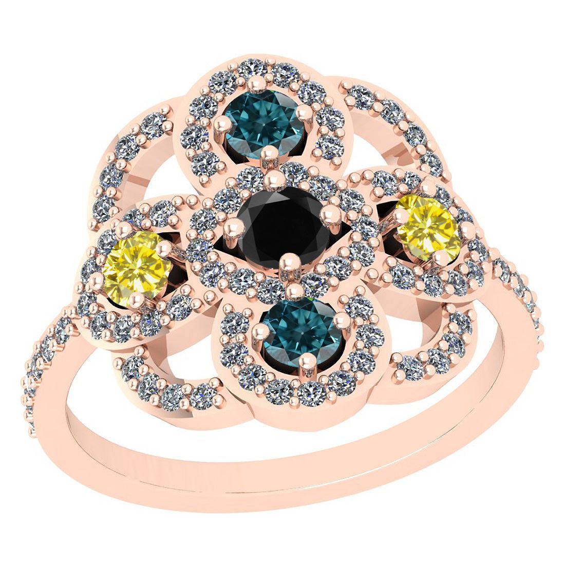 Certified 1.73 Ctw I2/I3 Multi Treated Fancy Blue,Black **|**|** Multi Diamond Approx Weight: 1.25 Ctw (Round Cut) Multi Diamond Color: Treated Fancy Blue,Black,Yellow Stone Setting: Prong Side Stone 0.48 Ctw Side Stone Color: J-K Stone Clarity: I2/I3 Stone Setting: Prong Metal Approx Weight: 7.00 Gram 14K Rose Gold Ring Size: 6 (Free Sizing Avialable 4.5 - 9)