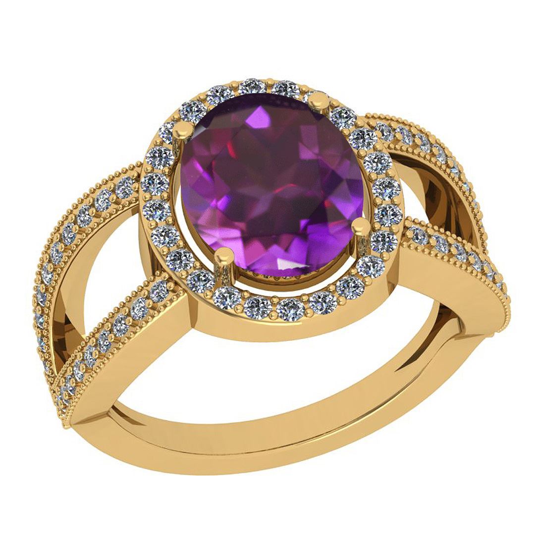 Certified 1.75 Ctw I2/I3 Amethyst And Diamond 10k Yello **|**|** Center Stone Approx Weight: 1.25 Ctw (Oval Cut) Center Stone Color: Amethyst Center Stone Setting: Prong Side Stone 0.50 Ctw Side Stone Color: J-K Stone Clarity: I2/I3 Stone Setting: Prong Metal Approx Weight: 3.80 Gram 10k Yellow Gold Engagement Halo Ring Size: 6 (Free Sizing Available)