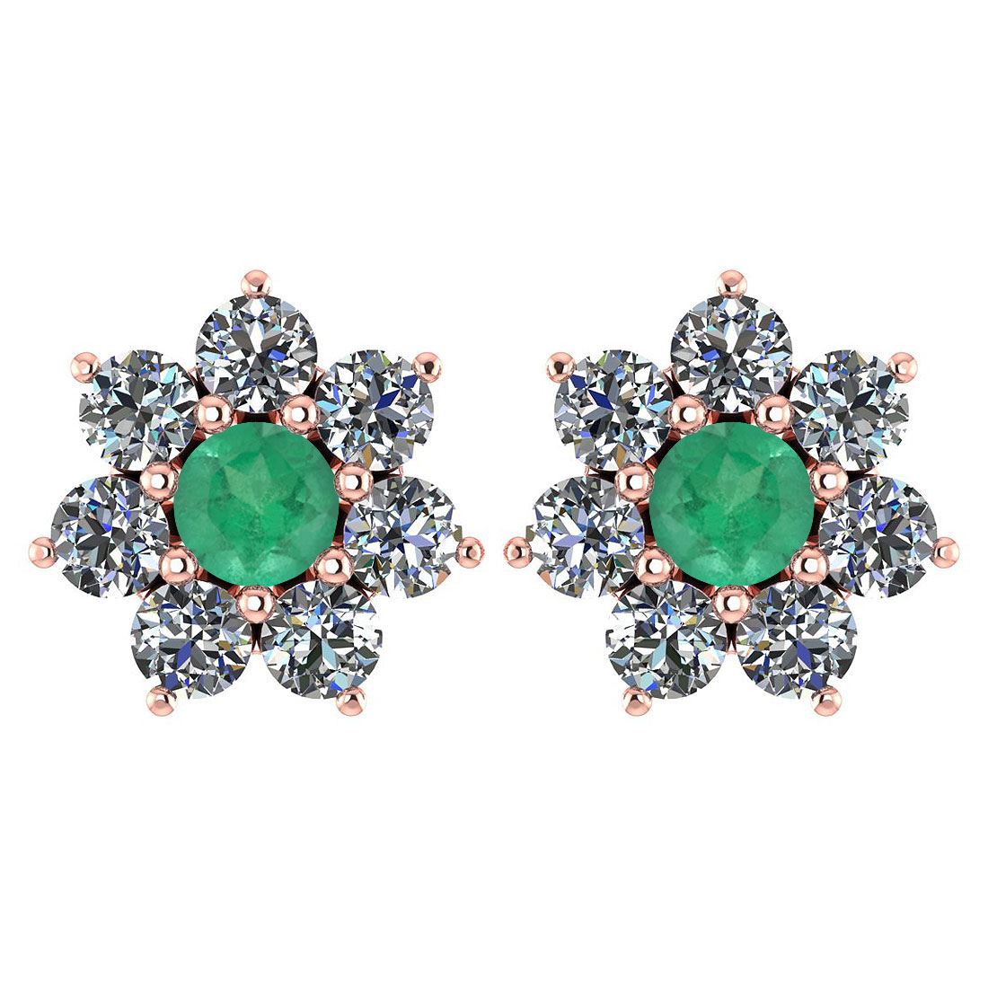 Certified 1.86 Ctw Emerald And Diamond 14k Rose Gold Ha **|**|** Center Stone Weight ; 0.46 Ctw (2 Pcs Round) Center Stone Color: Emerald Center Stone Setting ; Prong Side Stone 1.40 ctw Side Stone Color: White J-K Diamond Side Stone Setting: Prong Side Stone Clarity: VS/SI1 Metal Color Rose Gold Metal Weight : Approx 2.74Gram 14K Rose Gold Halo Stud Earring