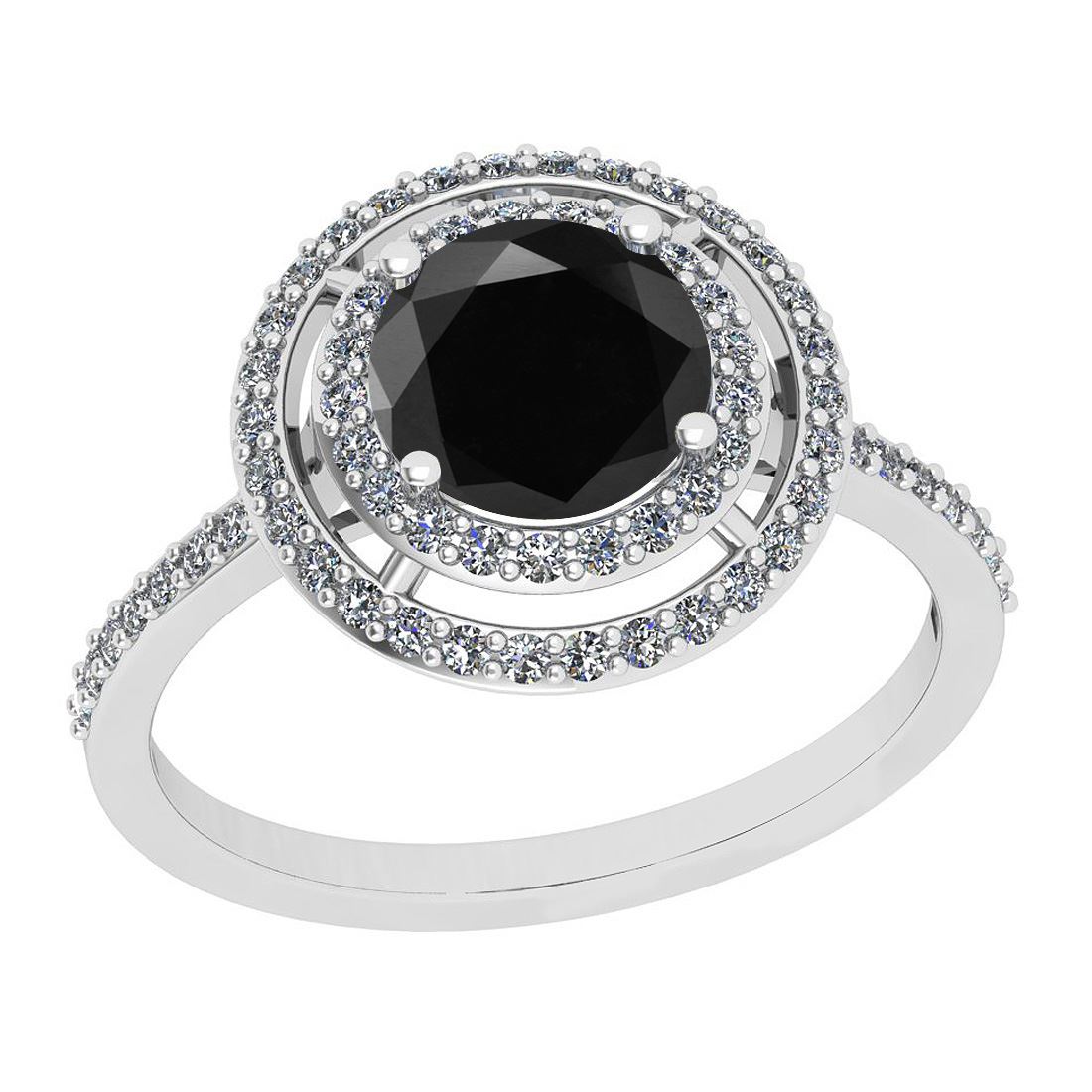 Certified 1.90 Ctw I2/I3 Treated Fancy Black and White **|**|** Center Approx Weight: 1.50 Ctw (Round Cut) Center Color: Treated Fancy Black Diamond Center Clarity: I2/I3 Center Setting: Prong Side Stone 0.40 Ctw Side Stone Color: G-H Stone Clarity: I2/I3 Stone Setting: Prong Metal Approx Weight: 3.80 Gram 18K White Gold Wedding Double Halo Ring Size: 6 (Free Sizing Avail)