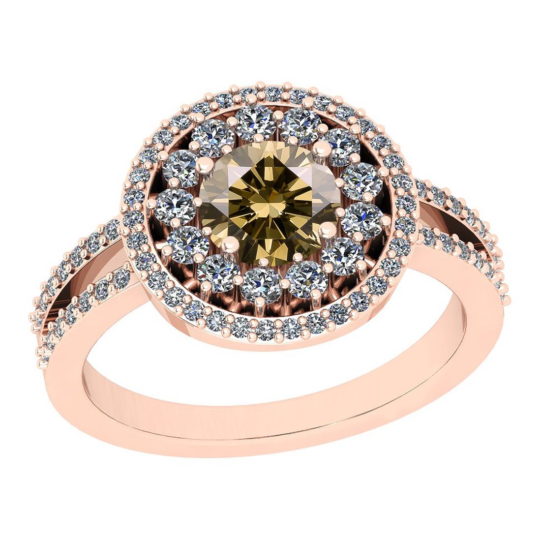 Certified 1.90 Ctw VS/SI1 Natural Fancy Yellow Brown An **|**|** Center Weight : 1.02 Ctw (Round Cut ) Center Color: Natural Fancy Yellow Brown Diamond Center Setting: Prong Side Stone 0.82 Ctw Side Stone Color: J-K Stone Clarity: VS/SI1 Stone Setting: Prong Metal Approx Weight: 5.50 Gram 14K Yellow Gold Vingate Style Anniversary Halo Ring Size: 6 (Free Sizing Avail)