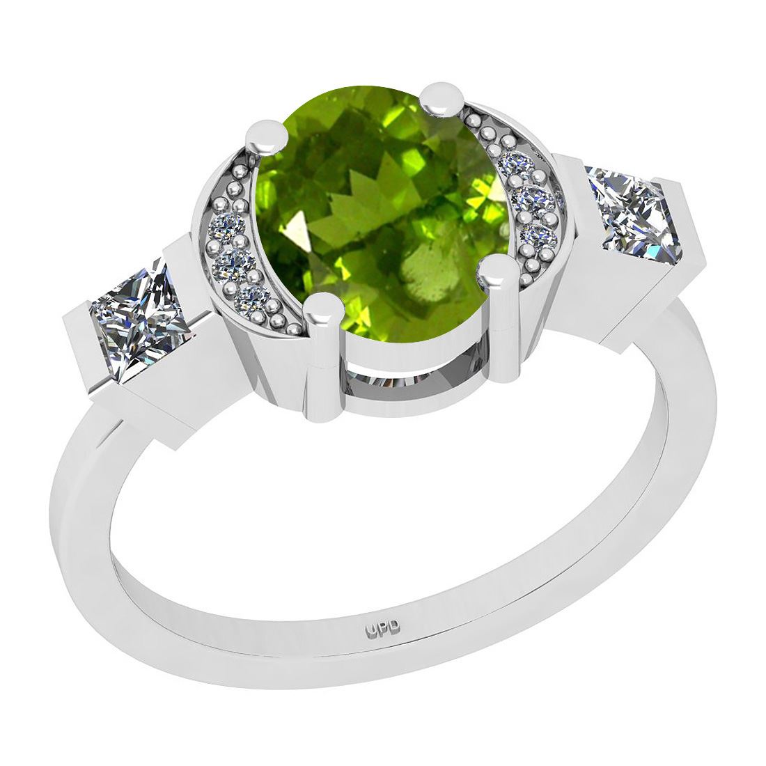 Certified 1.91 Ctw I2/I3 Peridot And Diamond 10K White **|**|** Center Stone Approx Weight: 1.75 Ctw (Oval Cut) Center Stone Color: Peridot Center Stone Setting: Prong Side Stone 0.16 Ctw Side Stone Color: J-K Stone Clarity: I2/I3 Stone Setting: Prong Metal Approx Weight: 3.60 Gram 10K White Gold Vintage Style Ring Size: 6 (Free Sizing Avail)