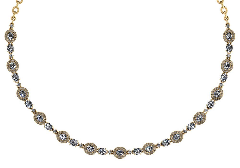 Certified 10.15 Ctw Diamond Necklace For Ladies 18K Yel **|**|** Diamond Stone Approx Weight ; 8.75 Ctw (25 Pcs Oval) Side Stone Weight: 1.40 (2.mm 12Pcs Round And 1.mm 208 Pcs Round Cut Diamond) Diamond Stone Color: White G-H Diamond Stone Clarity: SI2/I1 Center Stone Setting: Prong 18K Yellow Gold Necklace