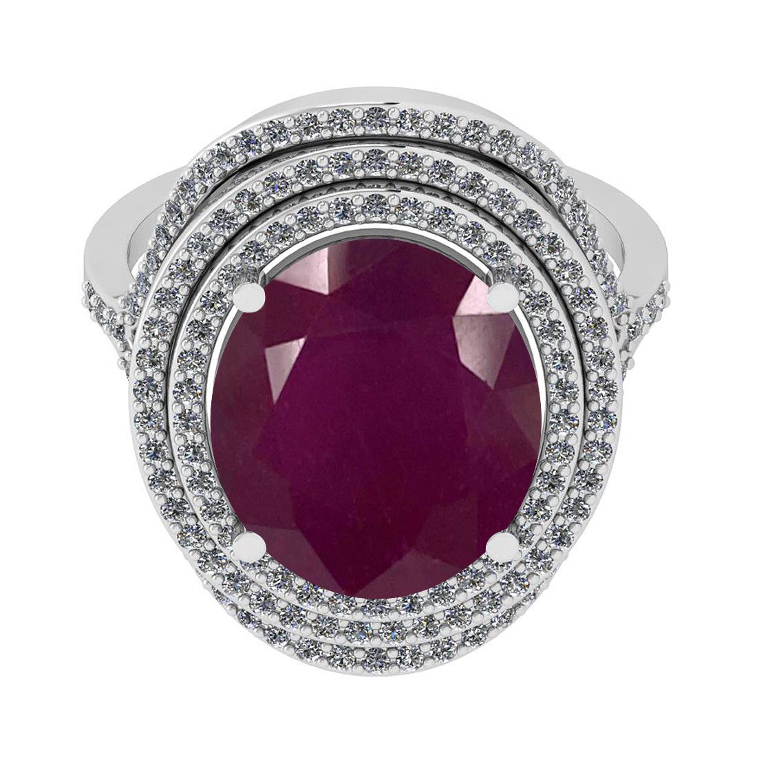 Certified 10.48 Ctw SI2/I1 Ruby And Diamond 14K White G **|**|** Center Stone Approx Weight: 9.78 Ctw (Oval Cut) Center Stone Color: Ruby Center Stone Setting: Prong Side Stone 0.70 Ctw Side Stone Color: J-K Stone Clarity: SI2/I1 Stone Setting: Prong Metal Approx Weight: 6.40 Gram 14K White Gold Victorian Style Engagement Halo Ring Size: 6 (Free Sizing Avialable 4.5 - 9)