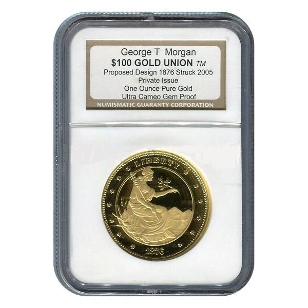 Certified $100 Gold Union One Ounce Proposed 1876 Desig **|**|** Certified $100 Gold Union One Ounce Proposed 1876 Design Pure Gold NGC PROOF No Box ; MSRP: $6500
