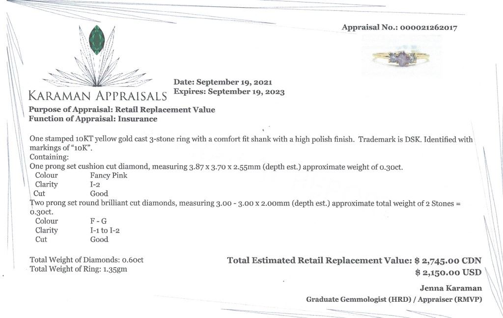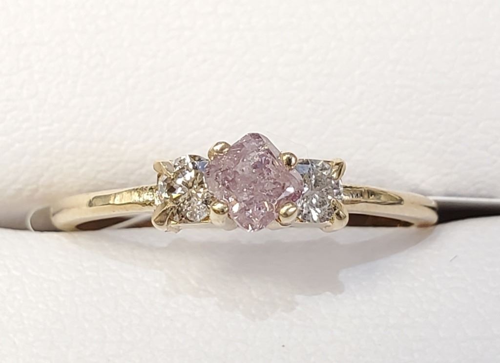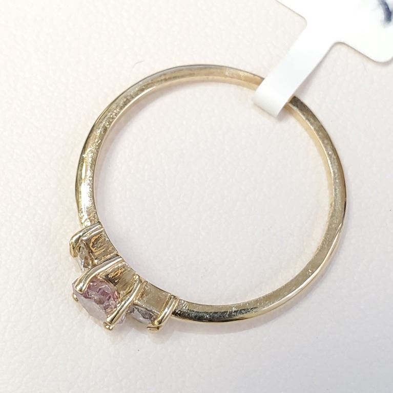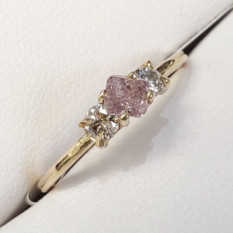 10K Yellow Gold Diamond(0.3Ct,I2,Fancy Pink)+0.3Ct 3-Stone Ring (~Size 7)(Ring is resizable for $40) (~weight 1.35g), Suggested Retail Value:1400