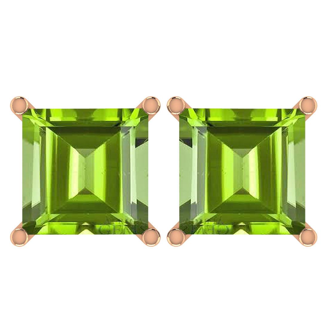 Certified 11.24 Ctw Genuine Peridot 14K Rose Gold Stud **|**|** Stone Weight ; 11.24 Ctw (2 Pcs Square Cut Stone) Stone Color: Peridot Center Stone Setting ; Prong Metal Color: Rose Gold Metal Approx Weight: 2.00 Gram 14K Rose Gold Stud Earrings Made In USA