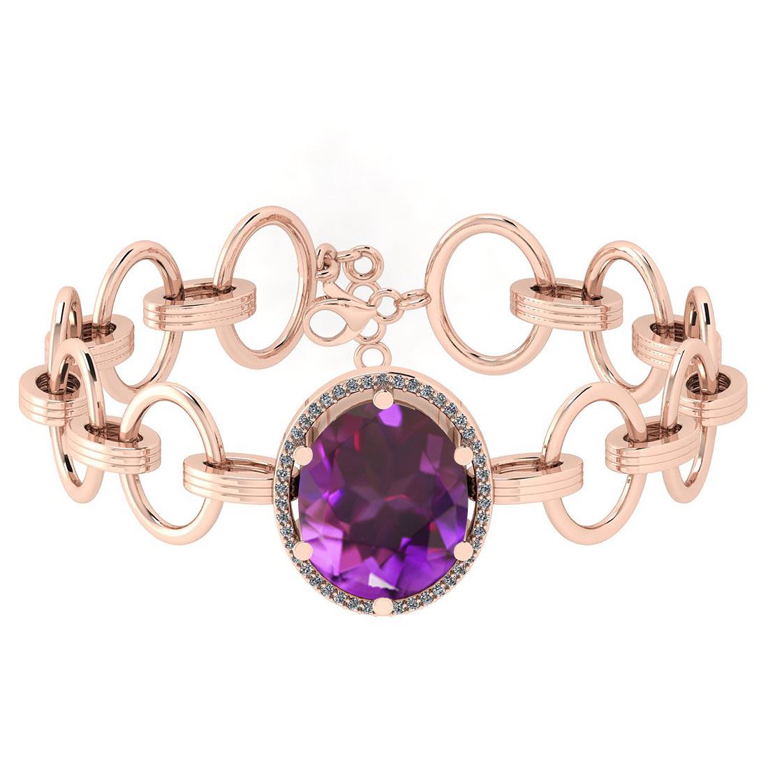 Certified 12.22 Ctw Amethyst And Diamond I2/I3 14K Rose **|**|** Center Stone Approx Weight: 11.70 Ctw (1 pcs Oval) Center Stone Color: Amethyst Center Stone Setting: Prong Side Stone Approx Weight: 0.52 Ctw Side Stone Color: J-K Stone Clarity: I2/I3 Stone Setting: Prong Metal Approx Weight: 25.00 Gram 14K Rose Gold Bracelets