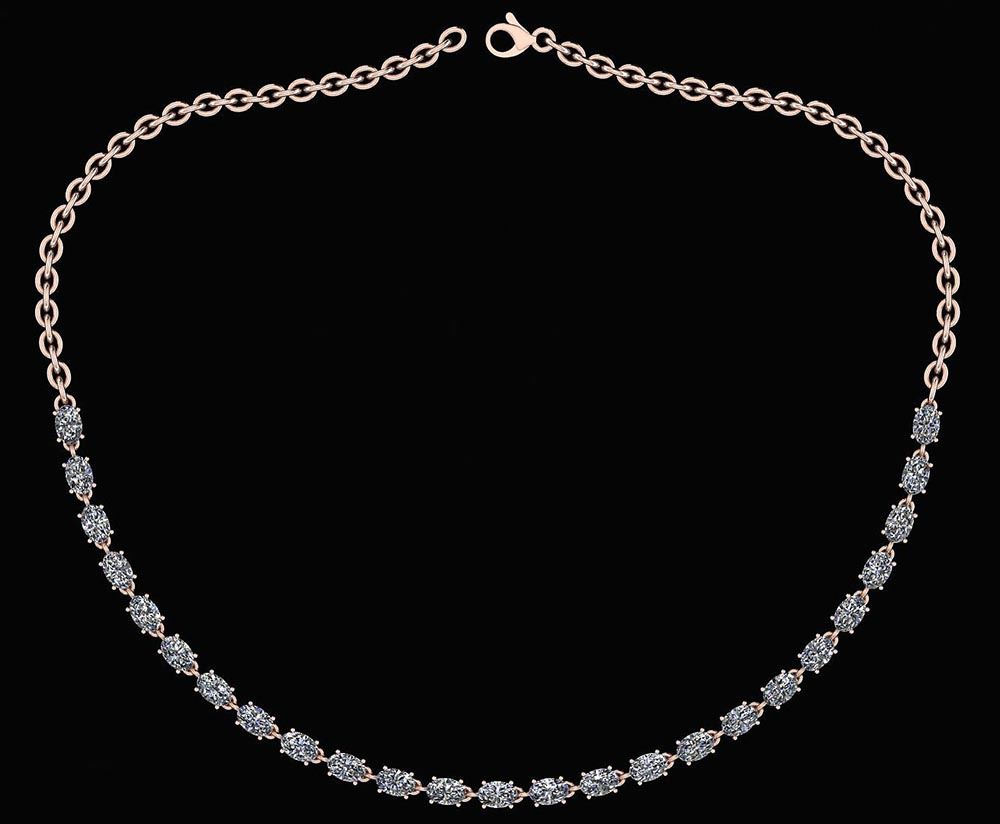 Certified 12.50 Ctw Diamond Necklace For Ladies 18K Ros **|**|** Diamond Stone Approx Weight ; 12.50 Ctw (25 Pcs Oval) Diamond Stone Color: White G-H Diamond Stone Clarity: SI2/I1 Center Stone Setting: Prong 18K Rose Gold Necklace