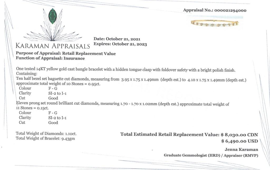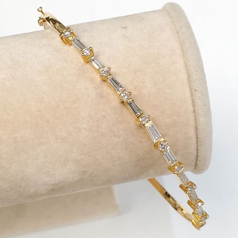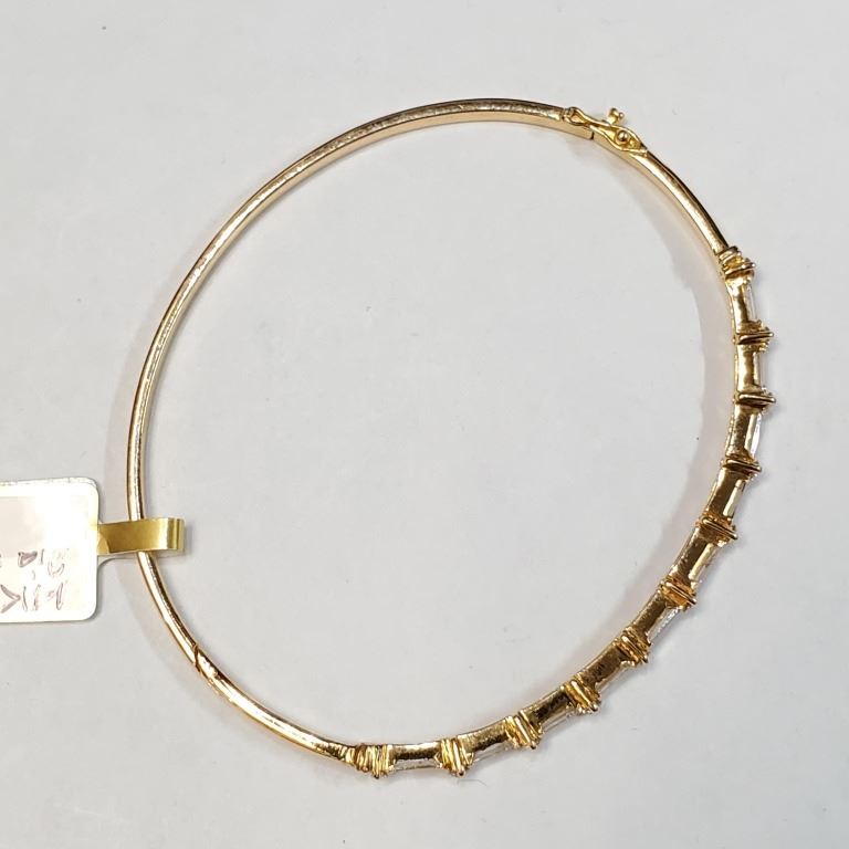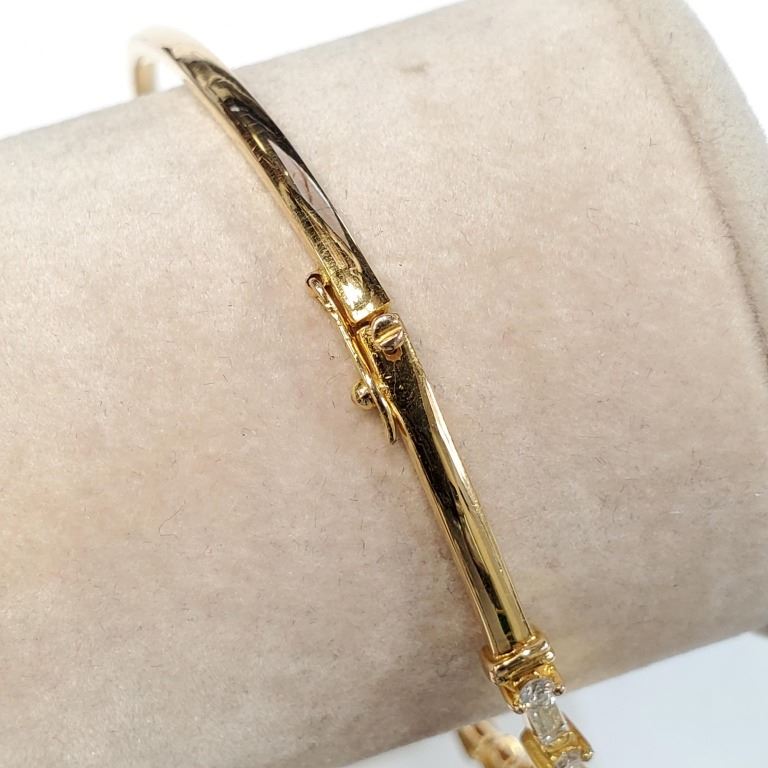 14K Yellow Gold 21 Diamonds(1.1Ct,Si1-I1,F-G) With A Hidden Tongue Clasp, Bangle Bracelet (~length 6.5 inches) (~weight 9.43g), Suggested Retail Value:6500