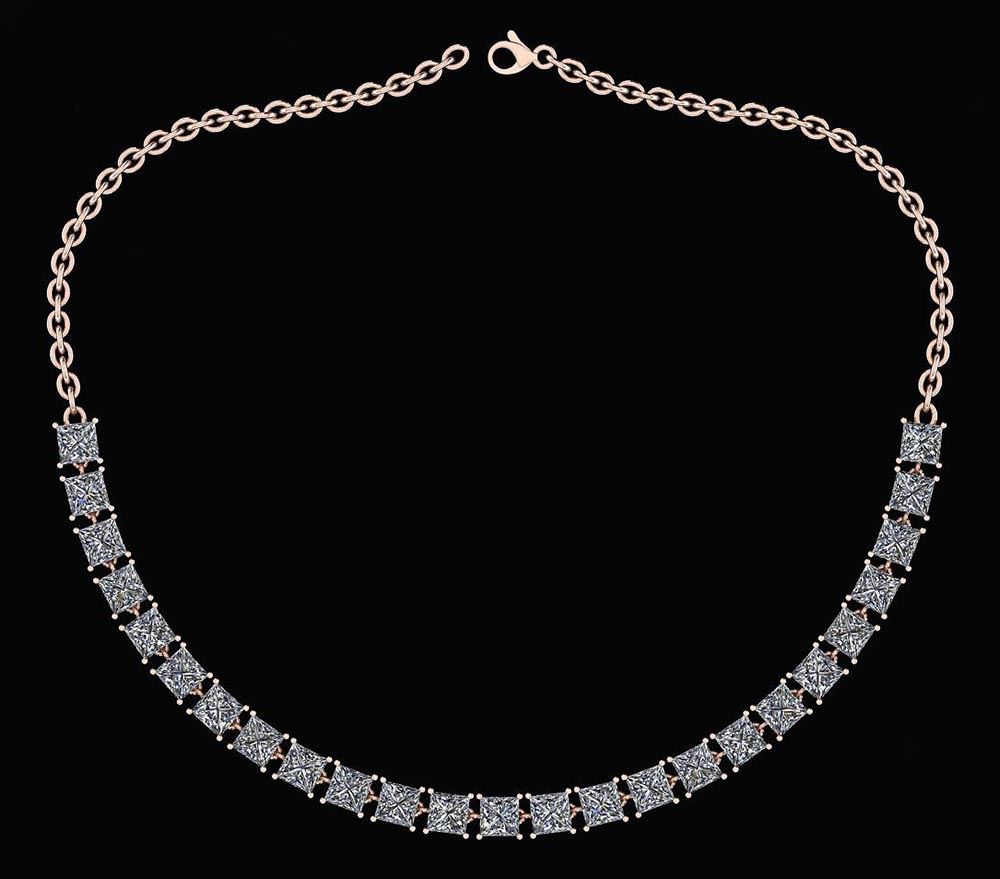 Certified 18.75 Ctw Diamond Necklace For Ladies 14K Ros **|**|** Diamond Stone Approx Weight ; 18.75 Ctw (25 Pcs Princess) Diamond Stone Color: White G-H Diamond Stone Clarity: I1/I2 Center Stone Setting: Prong Metal Weight Approx: 14.10 Gram 14K Rose Gold Necklace