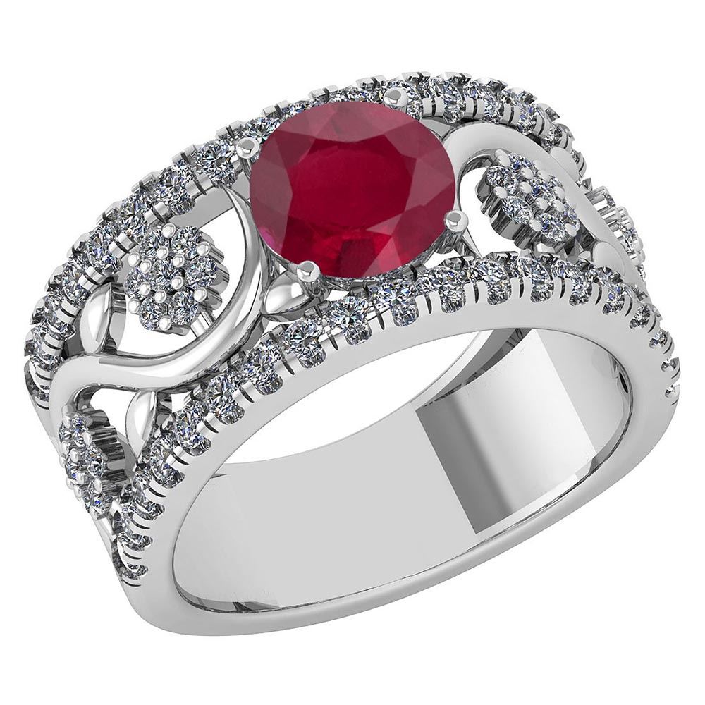 Certified 2.00 Ctw Ruby And Diamond VS/SI1 Wedding/ Eng **|**|** Center Stone Weight: 1.25 Ctw (1 Pcs Round) Center Stone Color: Ruby Center Stone Setting: Prong Side Stone Weight Of Ctw 0.75 Ctw (66 Pcs Round Cut Diamond VS/SI1) Side Stone Color: White G-H Diamond VS/SI1 Stone Clarity: VS/SI1 Stone Setting: Pave Metal Weight: Approx 5.60 Gram 14K Yellow Gold Halo Ring