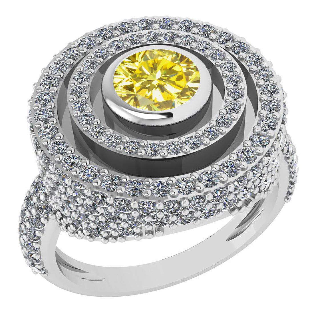 Certified 2.05Ctw Fancy Yellow Diamond And White G-H Di **|**|** Center Weight ; 0.50 Ctw (1 Pcs Round) Stone Color : Fancy Yellow Diamond Stone Clarity : SI1/I1 Center Stone Setting ; Prong Side Stone (1.mm 25Psc And 1.20mm 179 Pcs Round Cut Diamond) 1.55 ctw Side Stone Color : White G-H Diamond Side Stone Setting: Prong Side Stone Clarity : VS/SI1 Metal Color: White Gold Metal Weight : Approx 5.90 Gram 14K White Gold Wedding/Engagement Halo Ring