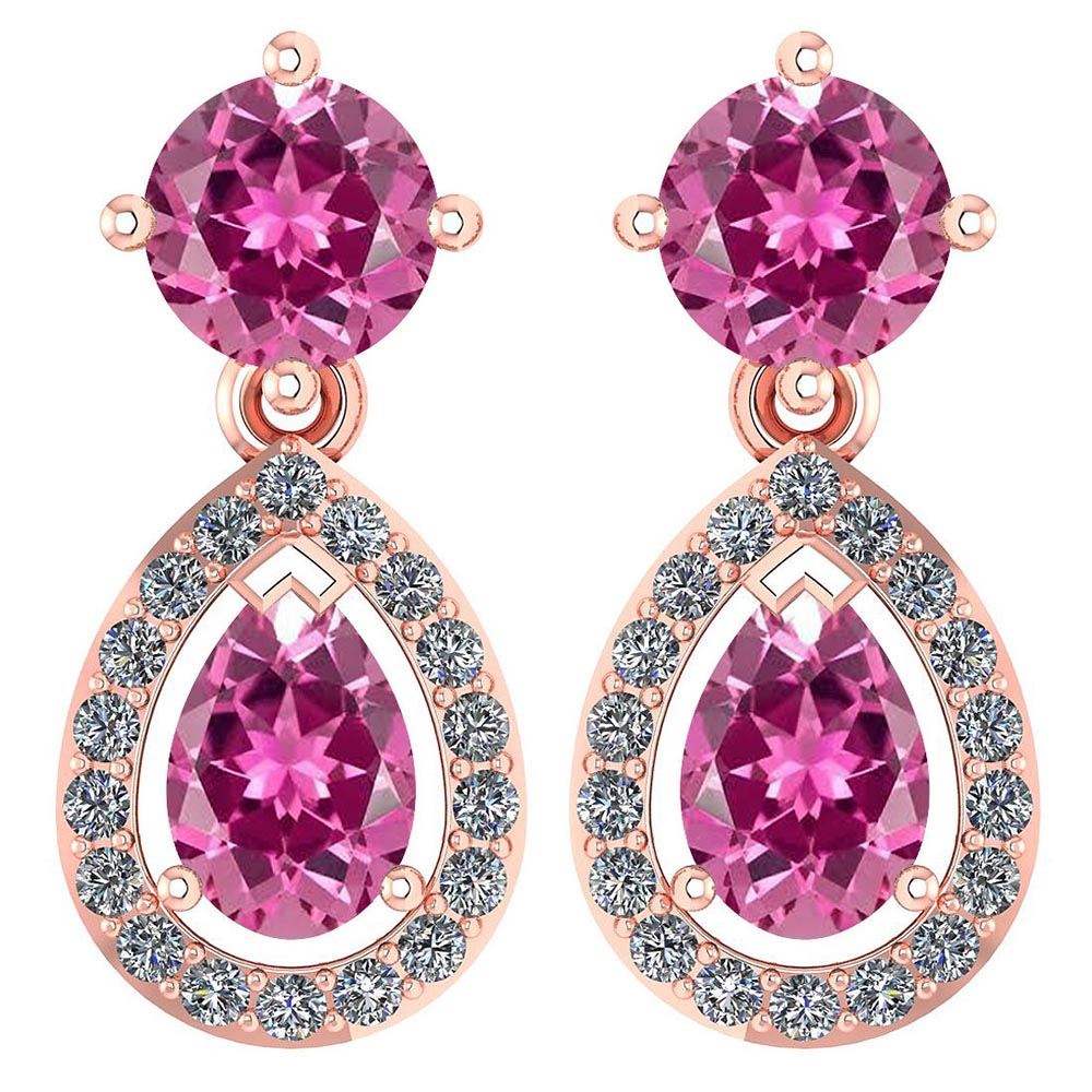 Certified 2.19 CTW Pink Tourmaline And Diamond 14k Rose **|**|** Center Stone Weight ; 1.00 CTW (2 Psc Pear) Top Stone Weight : 0.90 (2 Pcs Round) Center Stone Color : Pink Tourmaline Center Stone Setting ; Prong Side Stone (1.2mm 36Pcs Round Cut Diamond) 0.29 CTW Side Stone Color : White G-H Diamond Side Stone Setting: Prong Side Stone Clarity : VS/SI1 Metal Color Rose Gold Metal Weight : Approx 2.72 Gram 14K Rose Gold Halo Dangling Earring