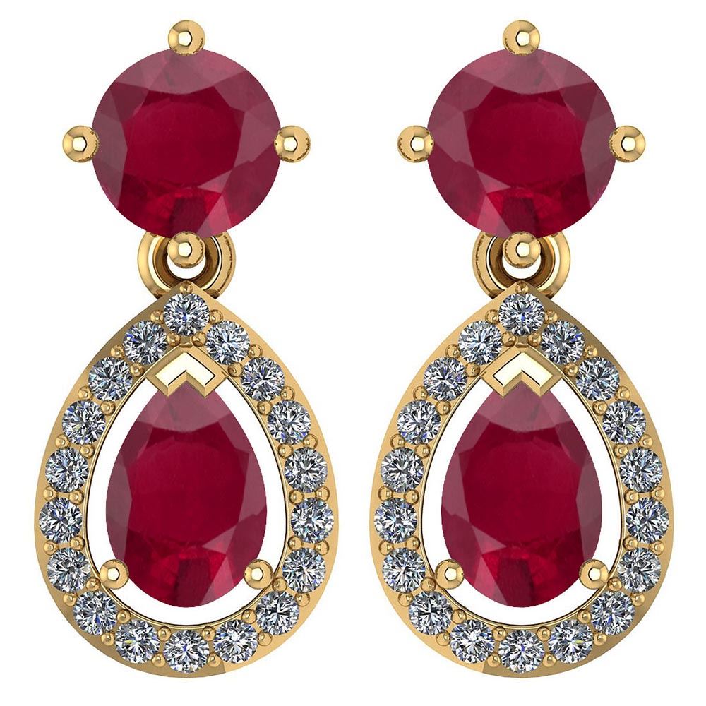 Certified 2.19 CTW Ruby And Diamond 14k Yellow Gold Hal **|**|** Center Stone Weight ; 1.00 CTW (2 Psc Pear) Top Stone Weight : 0.90 (2 Pcs Round) Center Stone Color : Ruby Center Stone Setting ; Prong Side Stone (1.2mm 36Pcs Round Cut Diamond) 0.29 CTW Side Stone Color : White G-H Diamond Side Stone Setting: Prong Side Stone Clarity : VS/SI1 Metal Color Yellow Gold Metal Weight : Approx 2.72 Gram 14K Yellow Gold Halo Dangling Earring