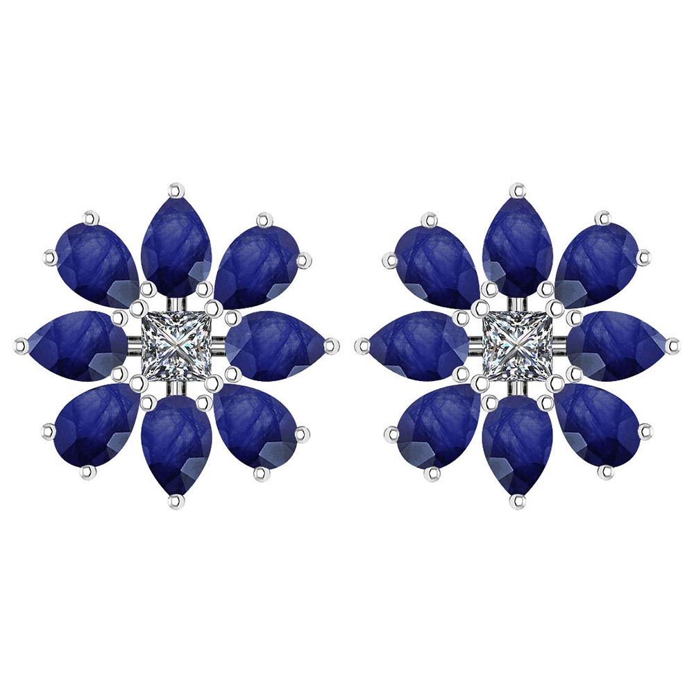 Certified 2.20 BLUE SAPPHIRE AND DIAMOND 14K GOLD STUD **|**|** Color Stone Weight ; 4.00 Ctw ( 16 Psc Pear )Center stone Color: Blue Sapphire Center Stone Setting : Prong Stone Weight : Side Stone Weight 0.12 Ctw ( 2 Psc Princess Cut Diamond) Diamond Stone Color : White G-H Diamond Stone Clarity : VS/SI1 Center Stone Setting : Prong: Weight : Approx 2.20 Gram 14K White Gold Stud Earring