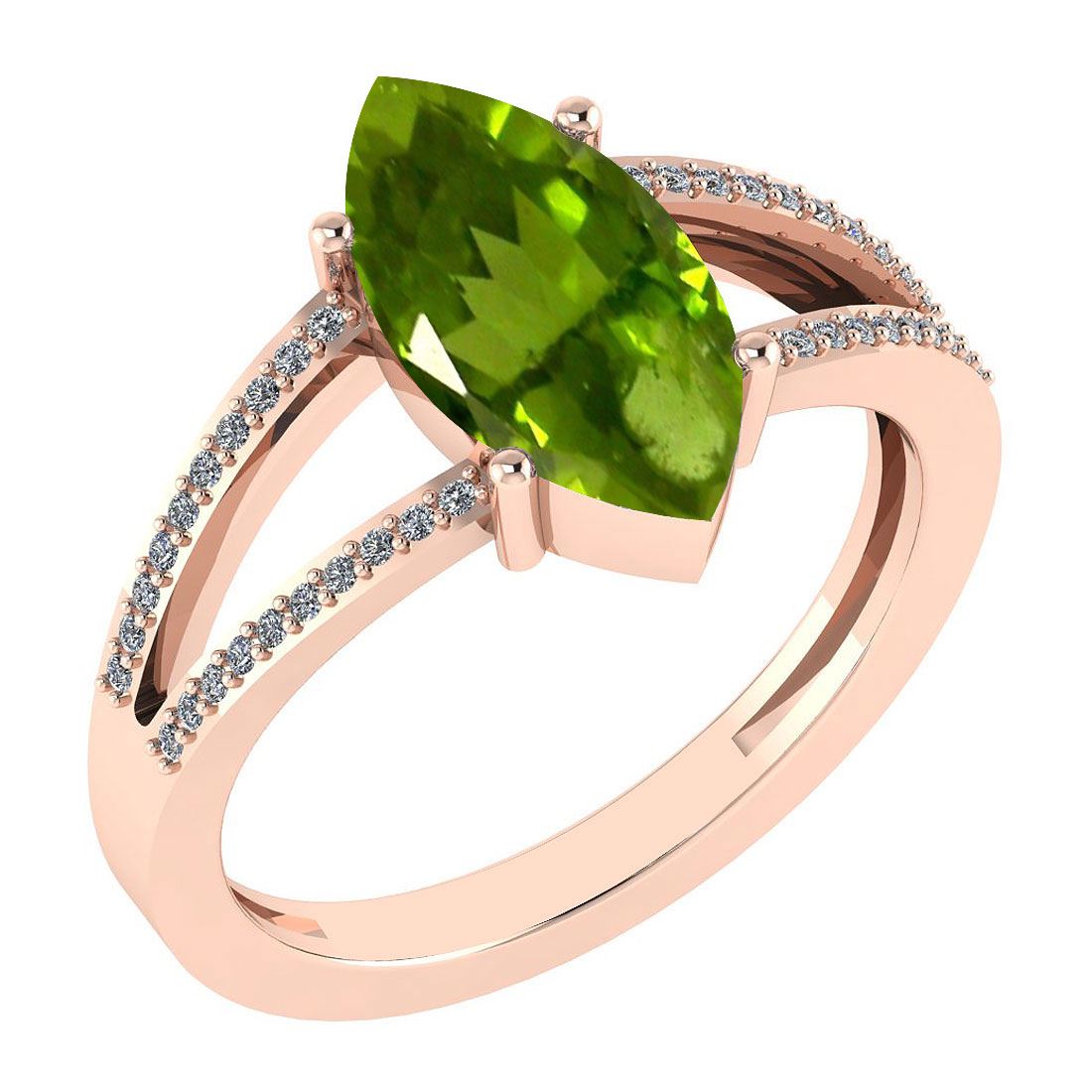 Certified 2.20 Ctw Peridot And Diamond VS/SI1 Ring 14K **|**|** Color Stone Approx Weight ; 2.00 Ctw (1 Pcs Marquise) Stone Color: Peridot Center Stone Setting ; Prong Side Stone (40 Pcs Round Cut Diamond) 0.20 ctw Side Stone Color: White G-H Diamond Side Stone Setting: Pave Side Stone Clarity: VS/SI1 Metal Approx Weight: 2.50 Gram 14K Rose Gold Ring Made In USA