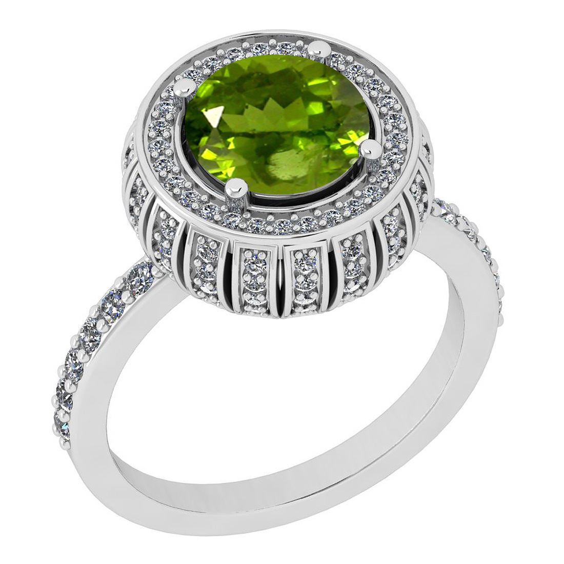 Certified 2.24 Ctw I2/I3 Peridot And Diamond 14K White **|**|** Center Stone Approx Weight: 1.70 Ctw (Round Cut) Center Stone Color: Peridot Center Stone Setting: Prong Side Stone 0.54 Ctw Side Stone Color: J-K Stone Clarity: I2/I3 Stone Setting: Prong Metal Approx Weight: 4.10 Gram 14K White Gold Antique Style Bridal Halo Ring Size: 6 (Free Sizing Avail 4.5 - 9)