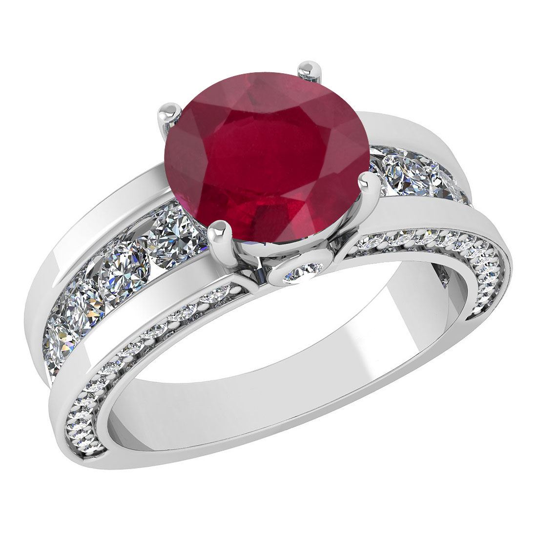 Certified 2.25 Ctw Ruby And Diamond Wedding/Engagement **|**|** Centre Stone Weight ; 1.25 Ctw (1 Pcs Round) Centre Stone Color : RubyCenter Stone Setting ; ProngSide Stone(63 Pcs Round Cut Diamond) 1.00 ctw Side Stone Color : White G-H Diamond Side Stone Setting: Prong Side Stone Clarity : VS/SI1 Metal Color: White Gold Metal Weight : Approx 5.50 Gram 14K White Gold Wedding/Engagement Halo Ring