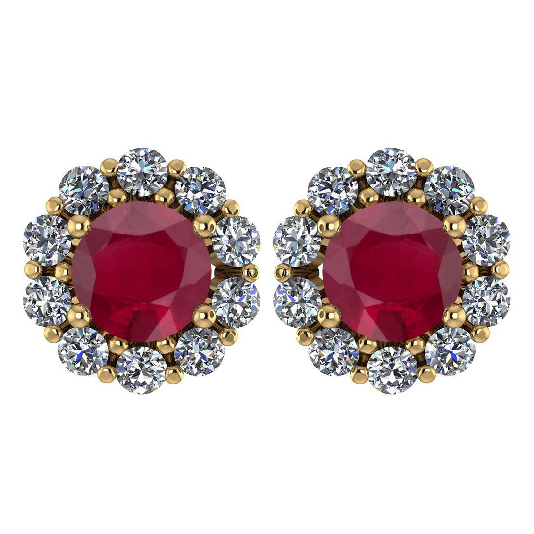 Certified 2.30 Ctw Ruby And Diamond 14k Yellow Gold Hal **|**|** Center Stone Weight ; 2.00Ctw (2 Pcs Round) Center Stone Color: Center Stone Setting ; Prong Side Stone (1.5mm 20Pcs Round Cut Diamond) 0.30 ctw Side Stone Color: White G-H Diamond Side Stone Setting: Prong Side Stone Clarity: VS/SI1 Metal Color Yellow Gold Metal Approx Weight: 1.1Gram 14K Yellow Gold Halo Stud Earrings Made In USA