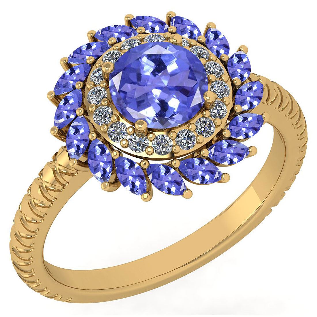 Certified 2.40 Ctw Tanzanite And Diamond VS/SI1 Halo Ri **|**|** Color Stone Approx Weight ; 2.24 Ctw (1 Pcs Round & 16 Pcs Marquise) Stone Color: Tanzanite Center Stone Setting ; Prong Side Stone (16 Pcs Round Cut Diamond) 0.16 ctw Side Stone Color: White G-H Diamond Side Stone Setting: Prong Side Stone Clarity: VS/SI1 Metal Approx Weight : 2.80 Gram 14K Yellow Gold Halo Ring Made In USA