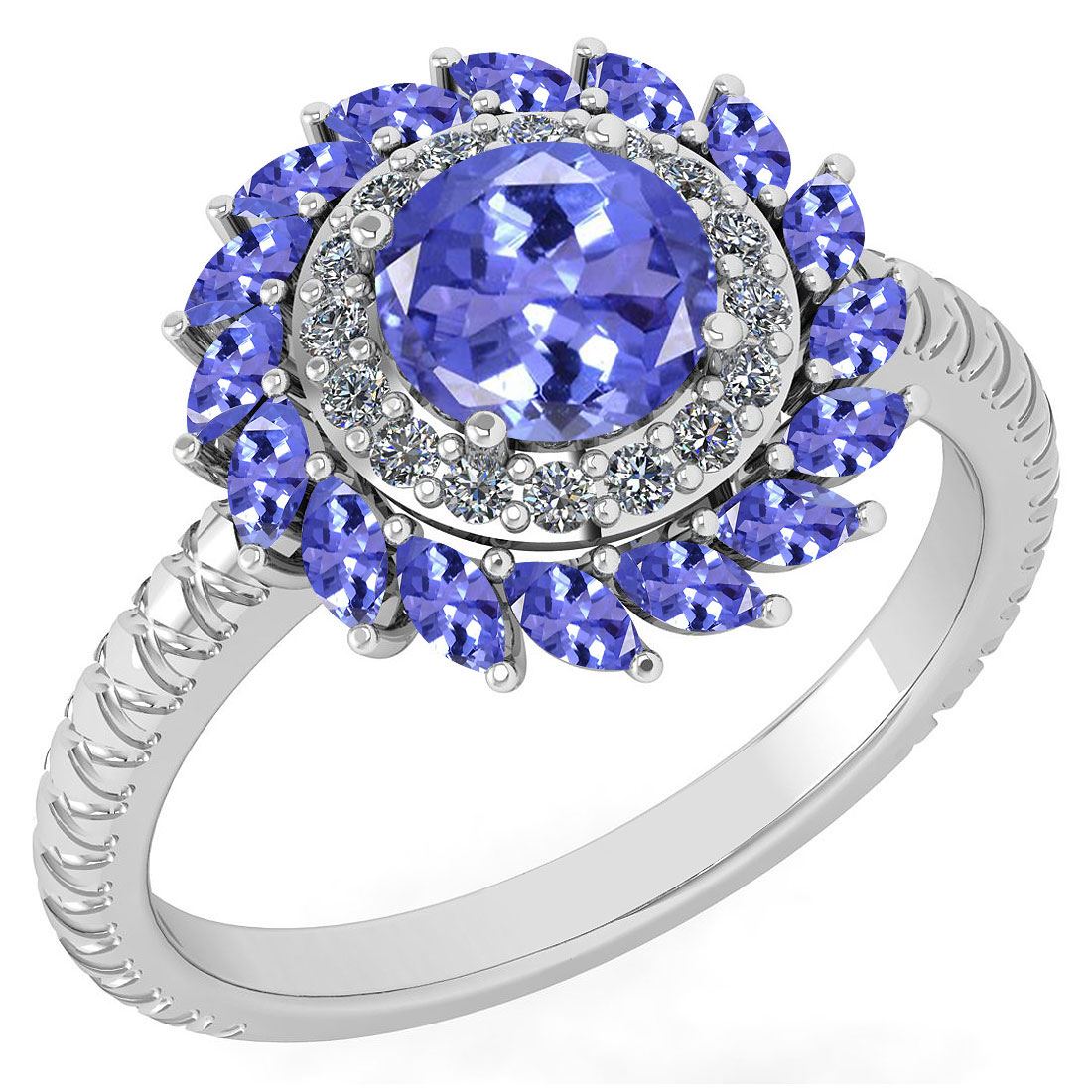 Certified 2.40 Ctw Tanzanite And Diamond VS/SI1 Halo Ri **|**|** Color Stone Approx Weight ; 2.24 Ctw (1 Pcs Round & 16 Pcs Marquise) Stone Color: Tanzanite Center Stone Setting ; Prong Side Stone (16 Pcs Round Cut Diamond) 0.16 ctw Side Stone Color: White G-H Diamond Side Stone Setting: Prong Side Stone Clarity: VS/SI1 Metal Approx Weight: 2.80 Gram 14K White Gold Halo Ring Made In USA