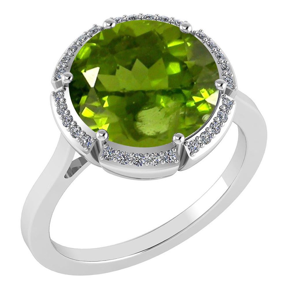 Certified 2.42 Ctw Peridot And Diamond VS/SI1 Halo Ring **|**|** Center Stone Approx Weight ; 2.00 Ctw (1 Pcs Round) Center Stone Color: Peridot Center Stone Setting ; Prong Side Stone (30 Pcs Round Cut Diamond) 0.42 ctw Side Stone Color: White G-H Diamond Side Stone Setting: Prong Side Stone Clarity: VS/SI1 Metal Weight Approx: 2.80 Gram 14K White Gold Halo Ring Made In USA