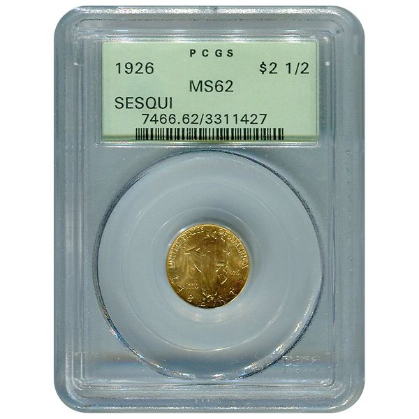 Certified $2.5 Gold Commemorative 1926 Sesquicentennial **|**|** Certified $2.5 Gold Commemorative 1926 Sesquicentennial MS62 PCGS ; MSRP: $750