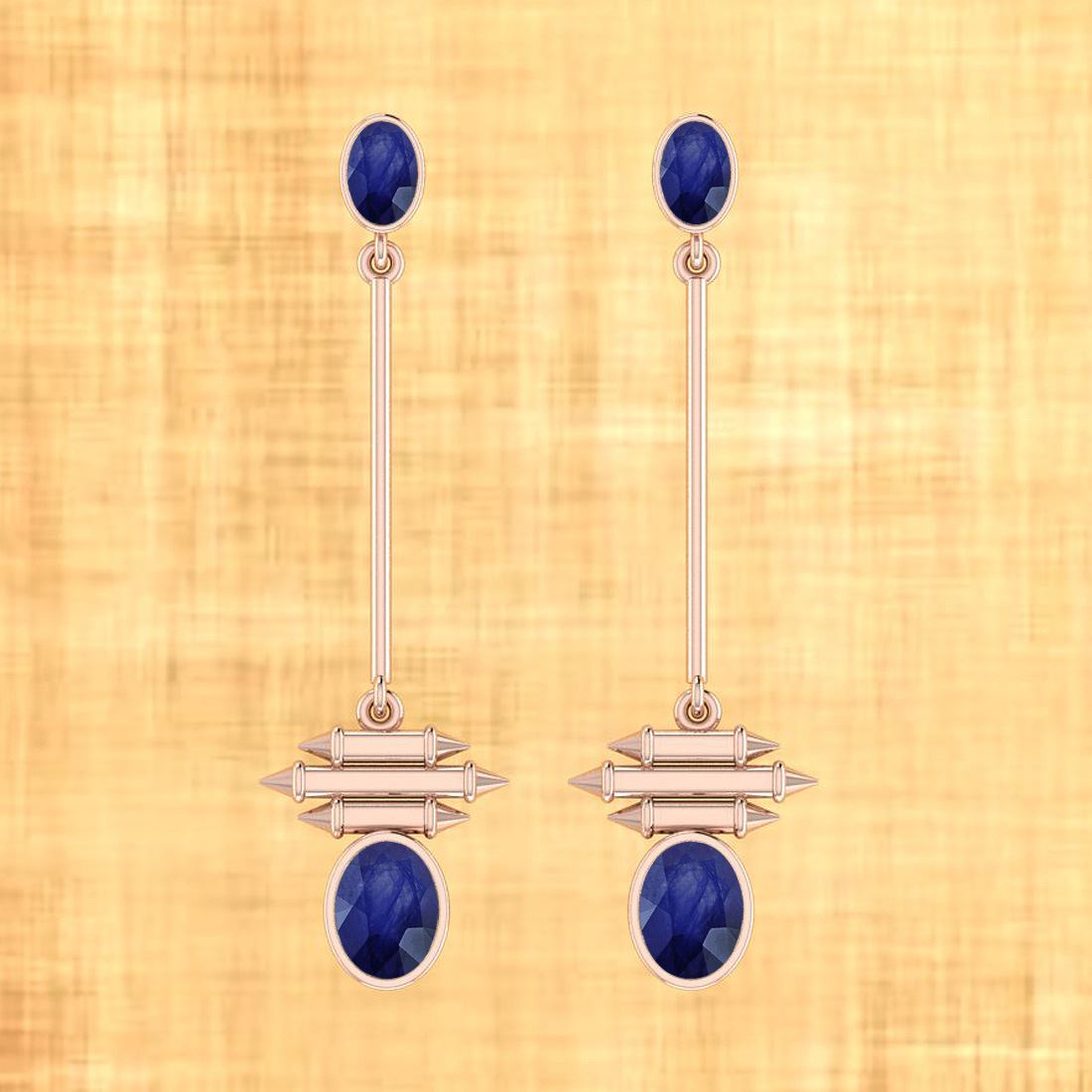 Certified 2.50 Ctw Blue Sapphire 18k Rose Gold Drop Ear **|**|** Color Stone Approx Weight: 2.50 Ctw (4 pcs Oval) Center Stone Color: Blue Sapphire Center Stone Setting: Bezel Metal Approx Weight: 3.50 Gram 18k Rose Gold Drop Earrings