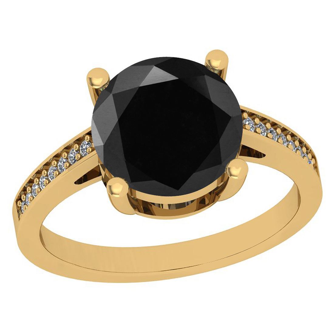 Certified 2.58 Ctw I2/I3 Treated Fancy Black and White **|**|** Center Approx Weight: 2.50 Ctw (Round Cut) Center Color: Treated Fancy Black Diamond Center Clarity: I2/I3 Center Setting: Prong Side Stone 0.08 Ctw Side Stone Color: G-H Stone Clarity: SI2/SI1 Stone Setting: Prong Metal Approx Weight: 2.80 Gram 18K Yellow Gold Engagement Ring Size: 6 (Free Sizing Avail)