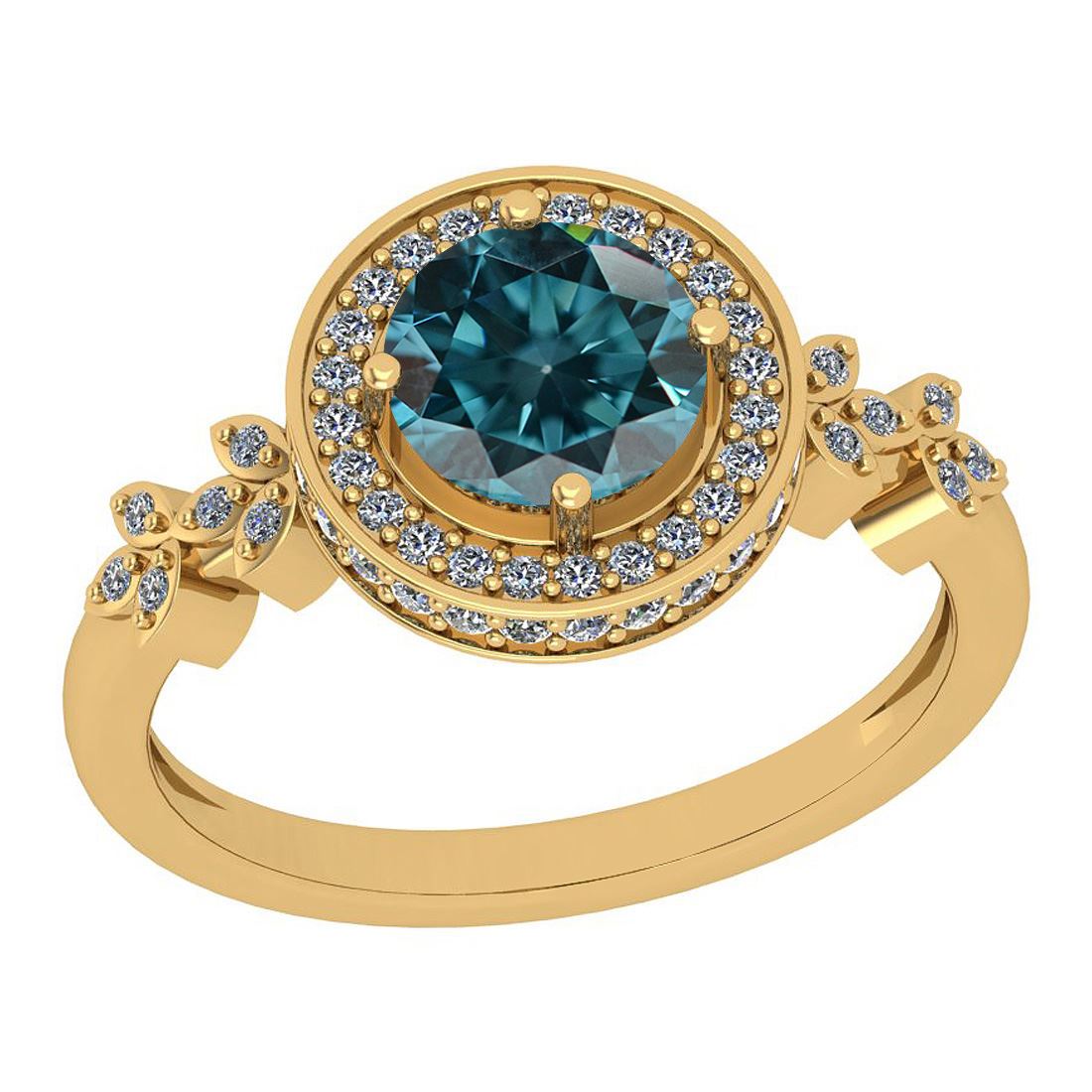 Certified 2.62 Ctw I2/I3 Treated Fancy Blue and White D **|**|** Center Approx Weight: 1.25 Ctw (Round Cut) Center Color: Treated Fancy Blue Diamond Center Clarity: I2/I3 Center Setting: Prong Side Stone 1.37 Ctw Side Stone Color: G-H Stone Clarity: I2/I3 Stone Setting: Prong Metal Approx Weight: 3.80 Gram 18K Yellow Gold Engagement Halo Ring Size: 6 (Free Sizing Avail)
