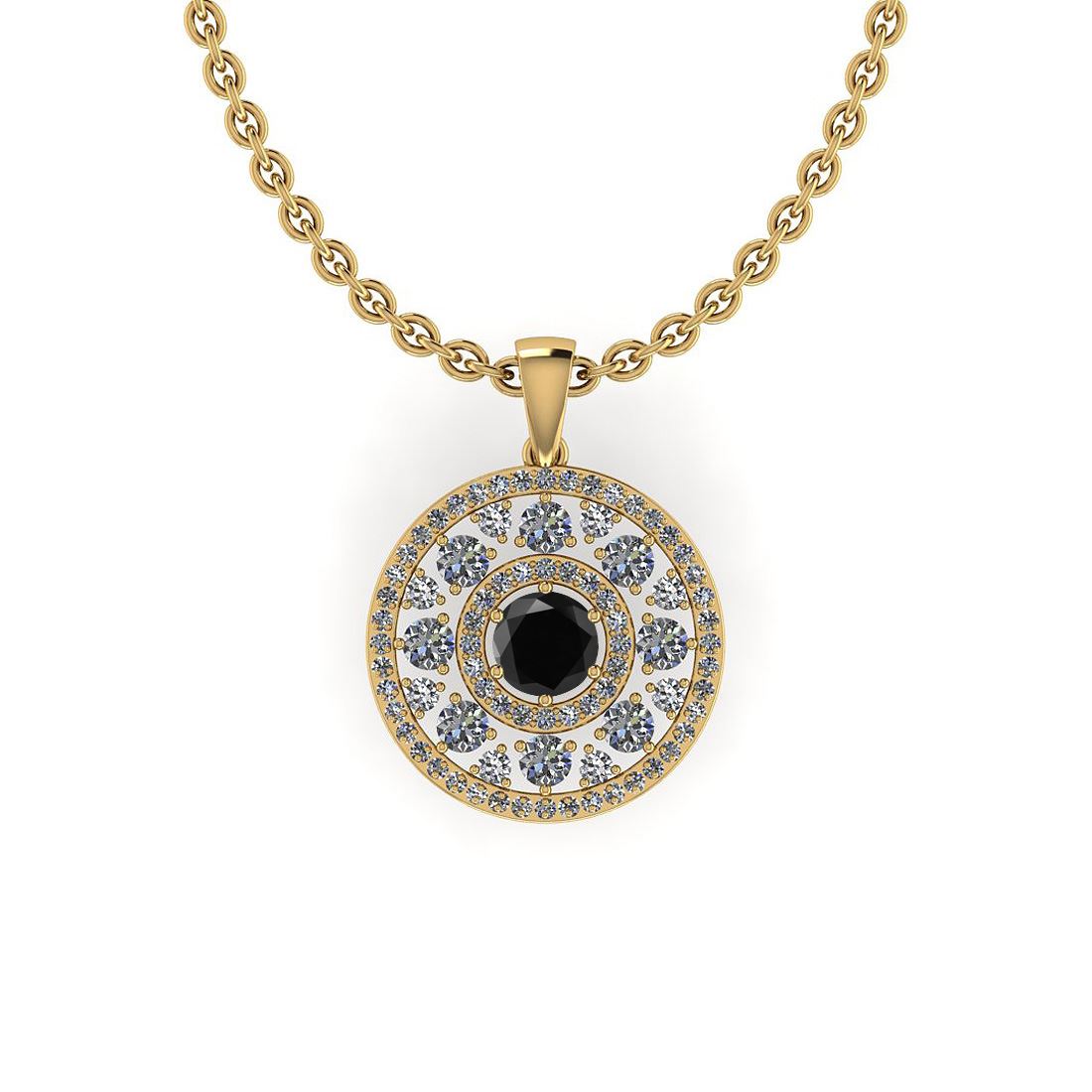 Certified 2.72 Ctw I2/I3 Treated Fancy Black and White **|**|** Center Approx Weight: 1.00 Ctw (Round Cut) Center Color: Treated Fancy Black Diamond Center Clarity: I2/I3 Center Setting: Prong Side Stone 1.72 Ctw Side Stone Color: G-H Stone Clarity: I2/I3 Stone Setting: Prong Metal Approx Weight: 3.80 Gram 18K Yellow Gold Halo Pendant