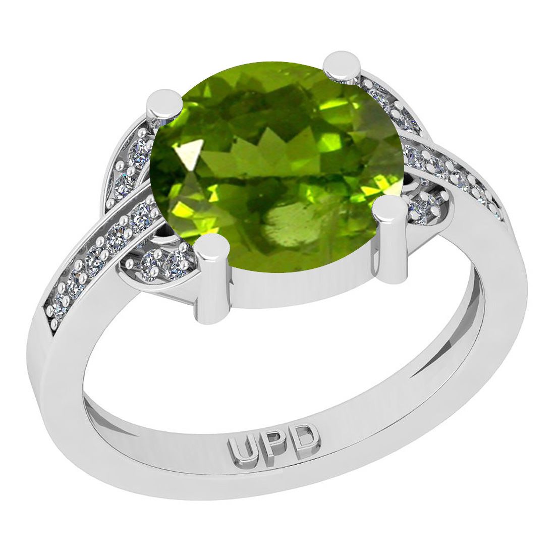 Certified 2.75 Ctw I2/I3 Peridot And Diamond 10K White **|**|** Center Stone Approx Weight: 2.50 Ctw (Round Cut) Center Stone Color: Peridot Center Stone Setting: Prong Side Stone 0.25 Ctw Side Stone Color: J-K Stone Clarity: I2/I3 Stone Setting: Prong Metal Approx Weight: 4.50 10K White Gold Ring Size: 6 (Free Sizing Avail)