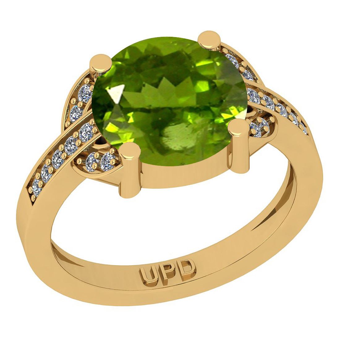 Certified 2.75 Ctw I2/I3 Peridot And Diamond 10K Yellow **|**|** Center Stone Approx Weight: 2.50 Ctw (Round Cut) Center Stone Color: Peridot Center Stone Setting: Prong Side Stone 0.25 Ctw Side Stone Color: J-K Stone Clarity: I2/I3 Stone Setting: Prong Metal Approx Weight: 4.50 10K Yellow Gold Ring Size: 6 (Free Sizing Avail)