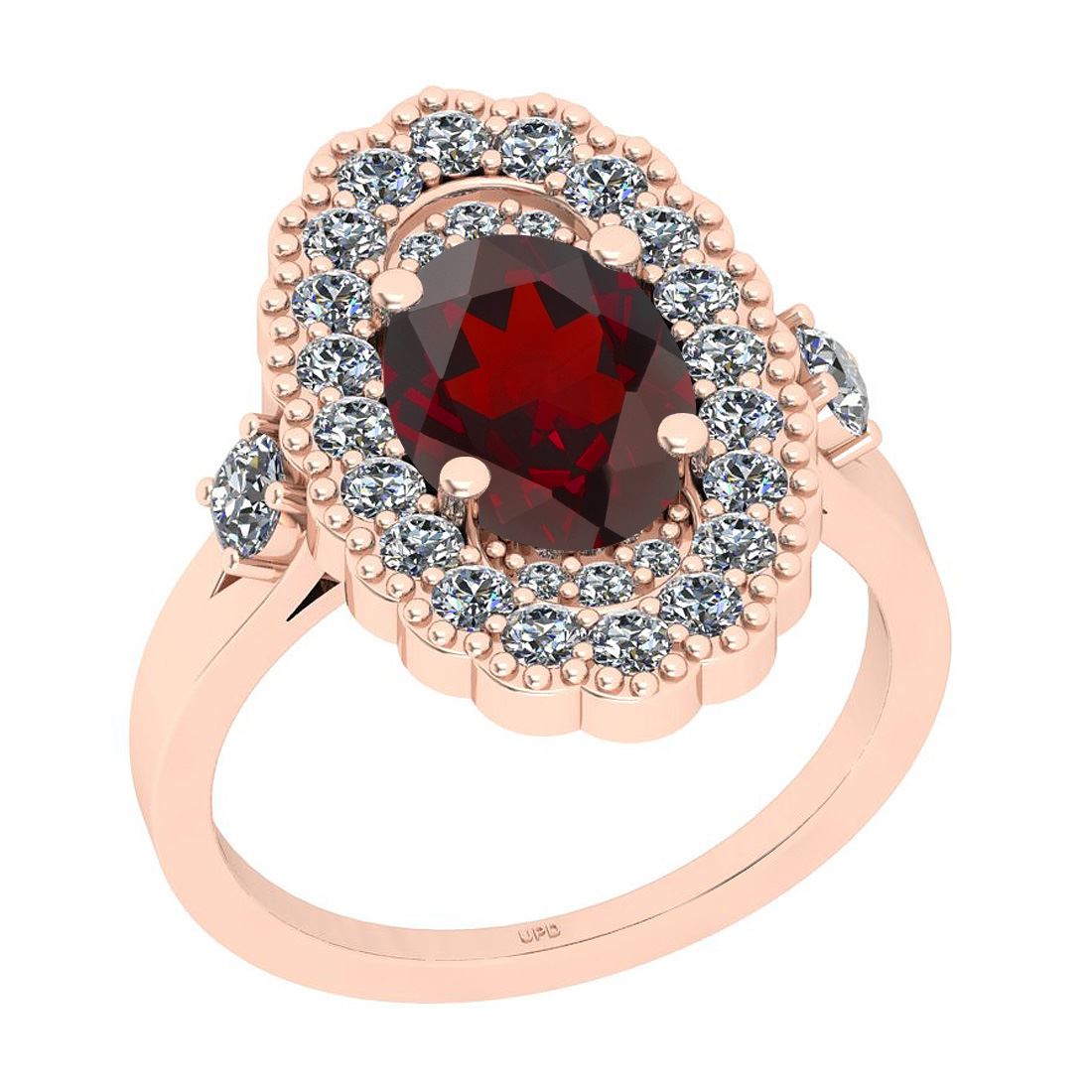 Certified 2.91 Ctw I2/I3 Garnet And Diamond 14K Rose Go **|**|** Center Stone Approx Weight: 1.95 Ctw (Oval Cut) Center Stone Color: Garnet Center Stone Setting: Prong Side Stone 0.96 Ctw Side Stone Color: J-K Stone Clarity: I2/I3 Stone Setting: Prong Metal Approx Weight: 4.80 Gram 14K Rose Gold Engagement Halo Ring Size: 6 (Free Sizing Available 4.5 - 9)