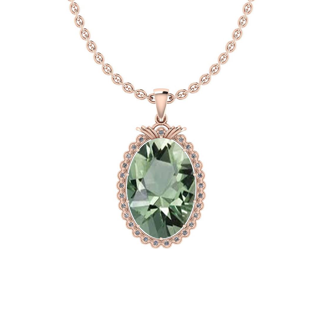 Certified 20.52 Ctw I2/I3 Green Amethyst And Diamond 10 **|**|** Center Stone Approx Weight: 20.34 Ctw (Oval Cut) Center Stone Color: Green Amethyst Center Stone Setting: Prong Side Stone 0.18 Ctw Side Stone Color: J-K Stone Clarity: I2/I3 Stone Setting: Prong Metal Approx Weight: 4.40 Gram 10K Rose Gold Pendant
