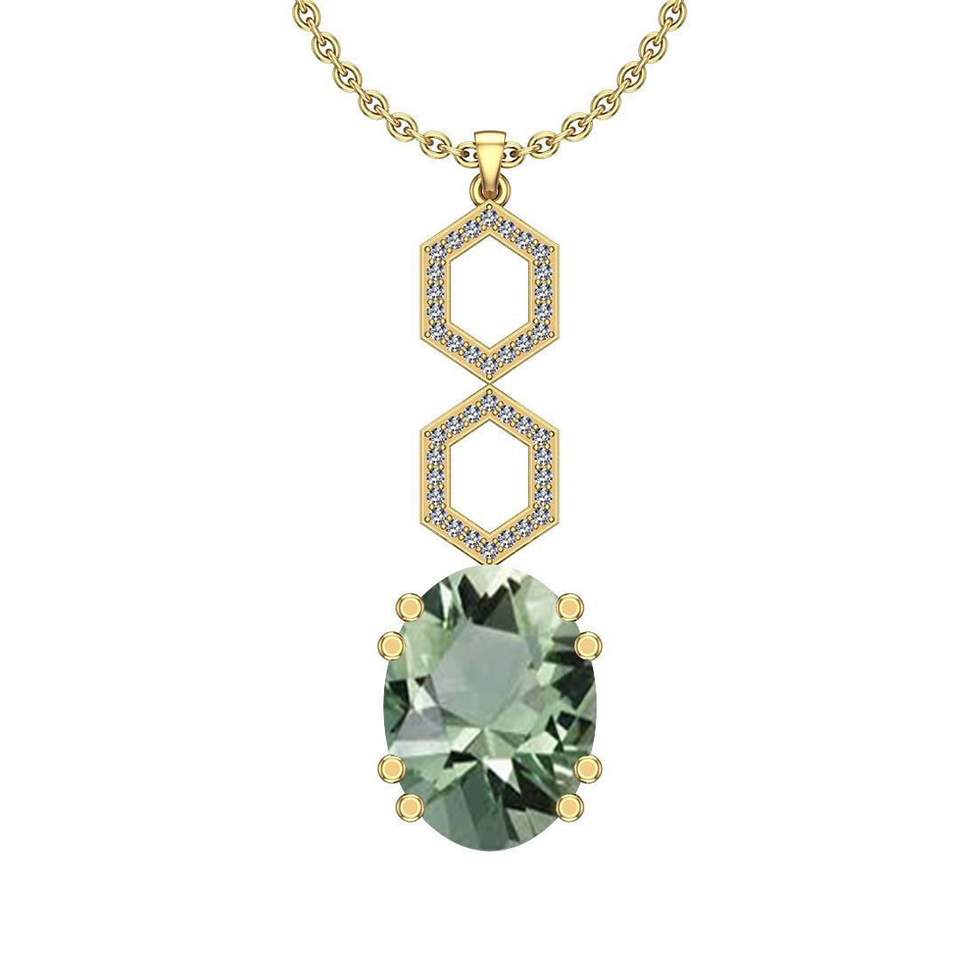 Certified 22.71 Ctw I2/I3 Green Amethyst And Diamond 14 **|**|** Color Stone Approx Weight: 22.15 Ctw (Oval Cut) Center Stone Color: Green Amethyst Center Stone Setting: Prong Side Stone 0.56 Ctw Side Stone Color: J-K Stone Clarity: I2/I3 Stone Setting: Prong Metal Approx Weight: 10.50 Gram 14K Yellow Gold Pendant