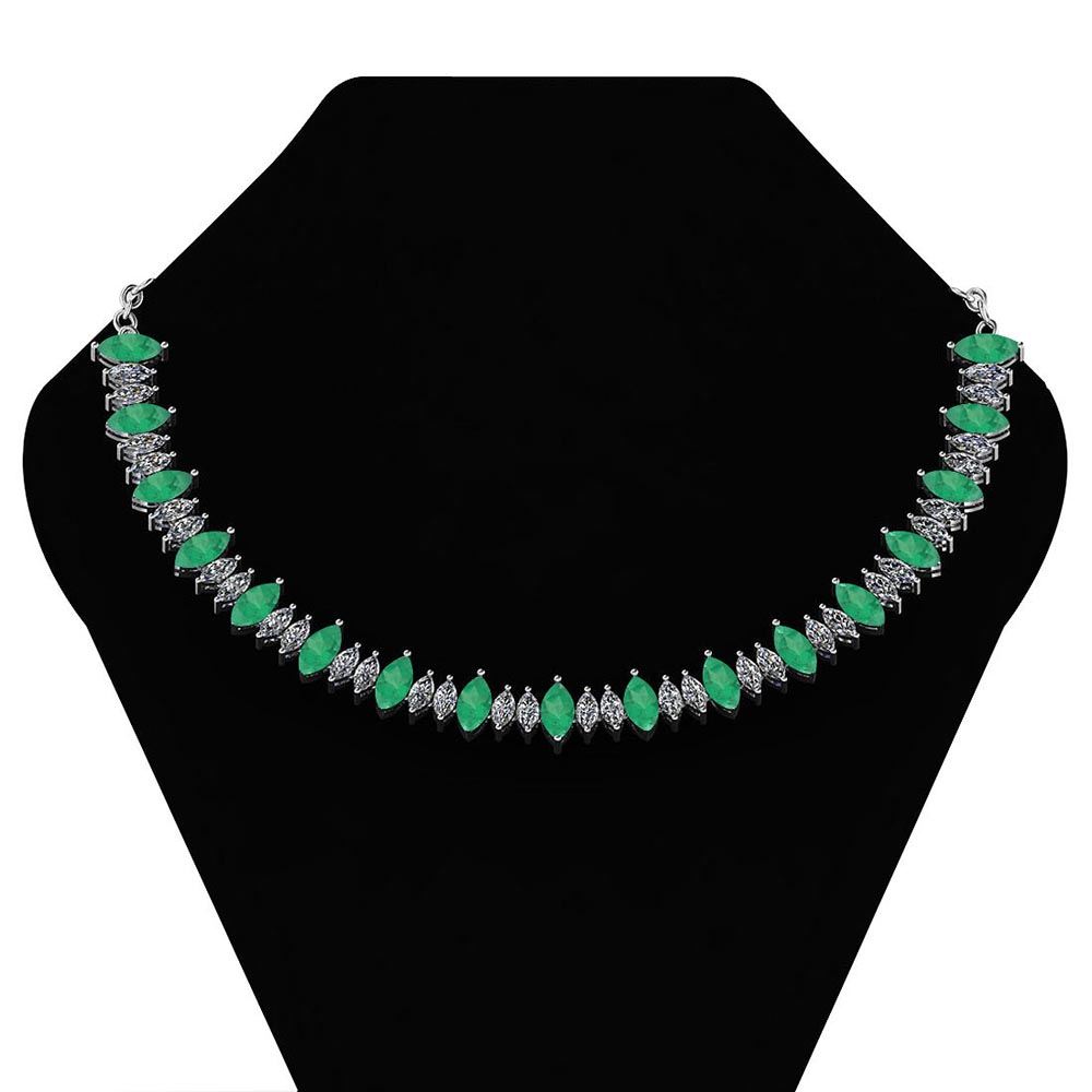Certified 27.56 Ctw Emerlad And Diamond Necklace For wo **|**|** Center Stone Approx Weight 17.00 Ctw (17 Pcs Marquies) Center Stone Color: Emerlad Center Stone Setting: Prong Side Stone Weight: 10.56 Ctw (32 Pcs Round Cut Diamond) Side Stone Color: White G-H Diamond Stone Clarity: I1/I2 Center Stone Setting ; Prong Metal Weight: Approx 21.10 Gram 14K White Gold Necklace