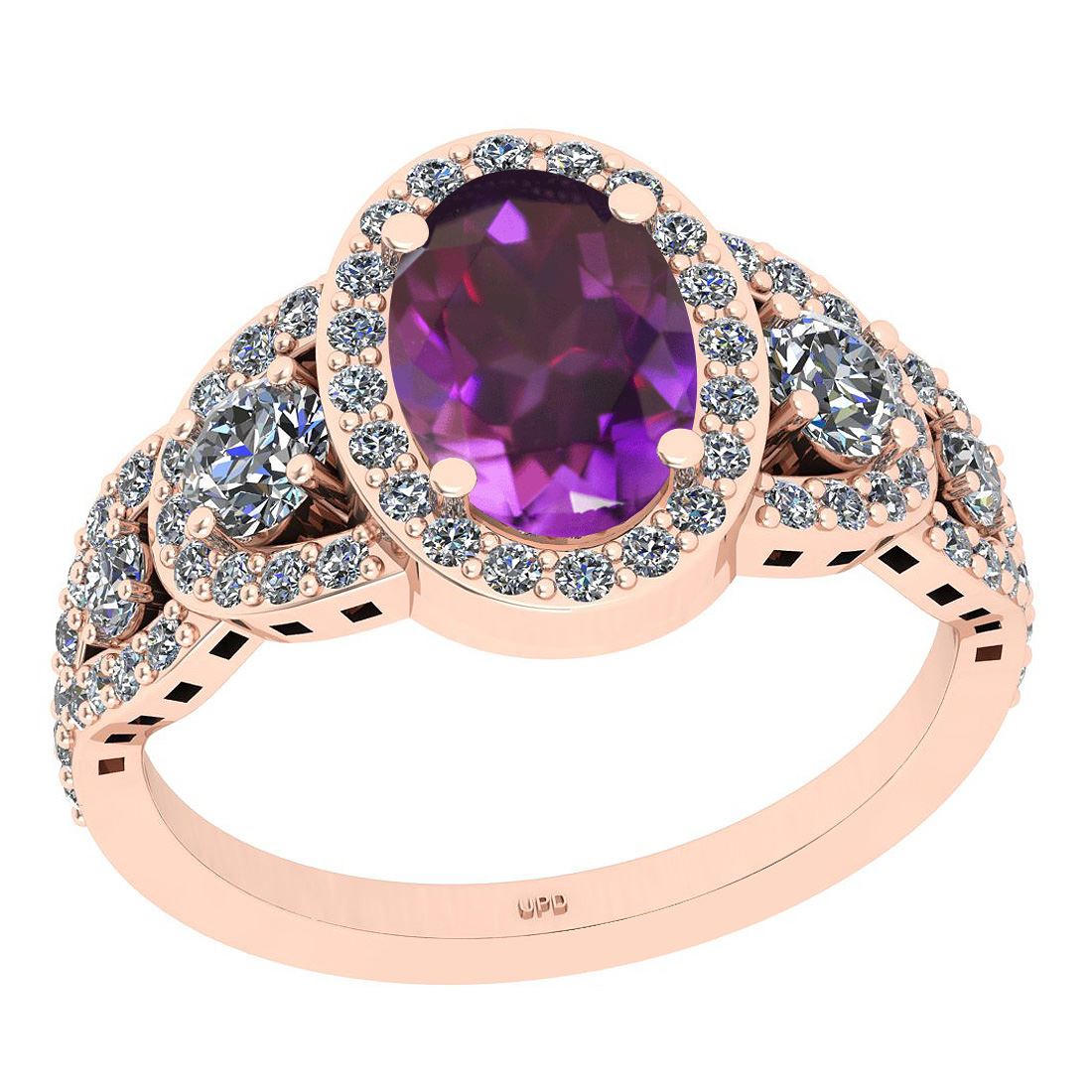 Certified 3.01 Ctw I2/I3 Amethyst And Diamond 10K Rose **|**|** Center Stone Approx Weight: 1.95 Ctw (Oval Cut) Center Stone Color: Amethyst Center Stone Setting: Prong Side Stone 1.06 Ctw Side Stone Color: J-K Stone Clarity: I2/I3 Stone Setting: Prong Metal Approx Weight: 3.80 Gram 10K Rose Gold Vintage Style Ring Size: 6 (Free Sizing Avail)
