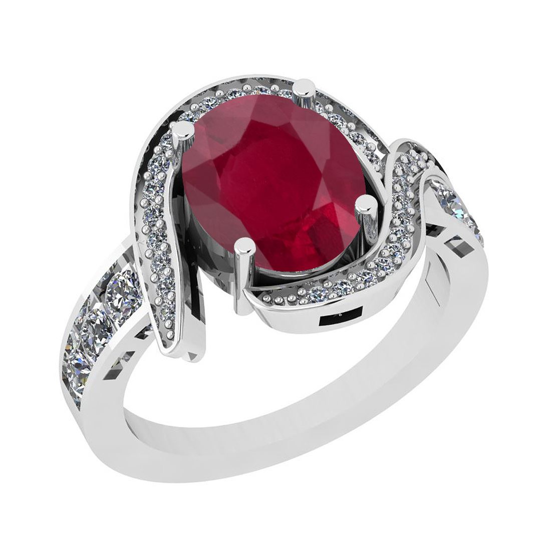 Certified 3.01 Ctw I2/I3 Ruby And Diamond 14K White Gol **|**|** Center Stone Approx Weight: 2.50 Ctw (Oval Cut) Center Stone Color: Ruby Center Stone Setting: Prong Side Stone 0.51 Ctw Side Stone Color: J-K Stone Clarity: I2/I3 Stone Setting: Prong Metal Approx Weight: 4.50 Gram 14K White Gold Vintage Style Ring Size: 6 (Free Sizing Avil)