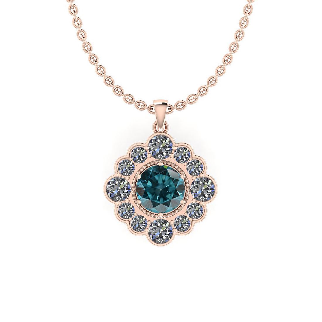 Certified 3.07 Ctw I2/I3 Treated Fancy Blue and White D **|**|** Center Approx Weight: 1.50 Ctw (Round Cut) Center Color: Treated Fancy Blue Diamond Center Clarity: I2/I3 Center Setting: Prong Side Stone 1.57 Ctw Side Stone Color: G-H Stone Clarity: I2/I3 Stone Setting: Prong Metal Approx Weight: 4.00 Gram 18K Yellow Gold Pendant