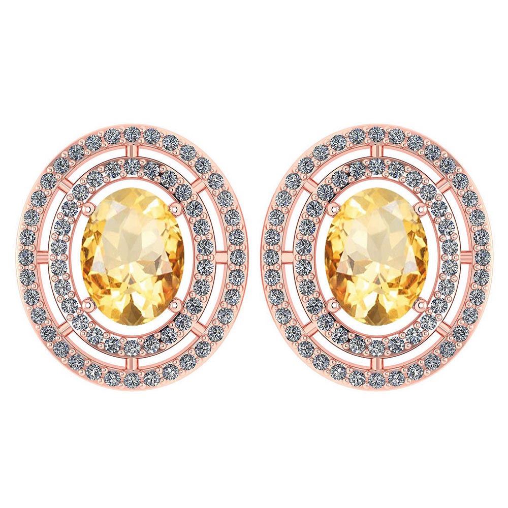 Certified 3.12 Ctw Citrine And Diamond 18K Rose Gold Ha **|**|** Center Stone Weight ; 2.50Ctw (2 Pcs Oval) Center Stone: Citrine Center Stone Setting ; Prong Side Stone (1.mm 124Pcs Round Cut Diamond) 0.62 ctw Side Stone Color : White G-H Diamond Side Stone Setting: Prong Side Stone Clarity : VS/SI1 Metal Color Rose Gold Metal Weight : Approx 4.10Gram 18K Rose Gold Halo Stud Earring
