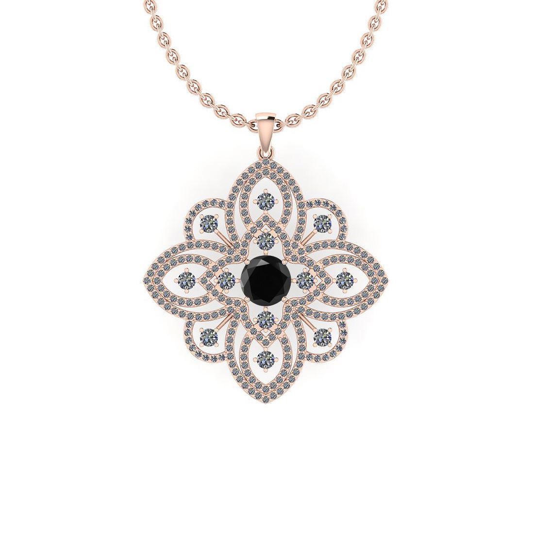 Certified 3.18 Ctw I2/I3 Treated Fancy Black and White **|**|** Center Approx Weight: 1.10 Ctw (Round Cut) Center Color: Treated Fancy Black Diamond Center Clarity: I2/I3 Center Setting: Prong Side Stone 2.08 Ctw Side Stone Color: G-H Stone Clarity: I2/I3 Stone Setting: Prong Metal Approx Weight: 5.00 Gram 18K Rose Gold Vintage Style Pendant
