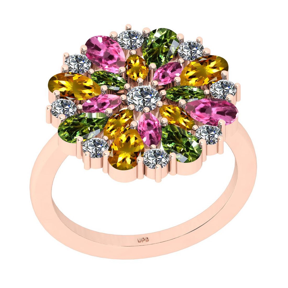 Certified 3.31 Ctw I2/I3 Multi Stone And Diamond 14K Ro **|**|** Multi Stone Approx Weight: 2.80 Ctw (Marquise & Pear) Multi Stone Color: pinkYellowGreen Sapphire Stone Setting: Prong Side Stone 0.51 Ctw Side Stone Color: J-K Stone Clarity: I2/I3 Stone Setting: Prong Metal Approx Weight: 3.80 Gram 14K Rose Gold Engagement Ring Size: 6 (Free Sizing Avail Made In USA)