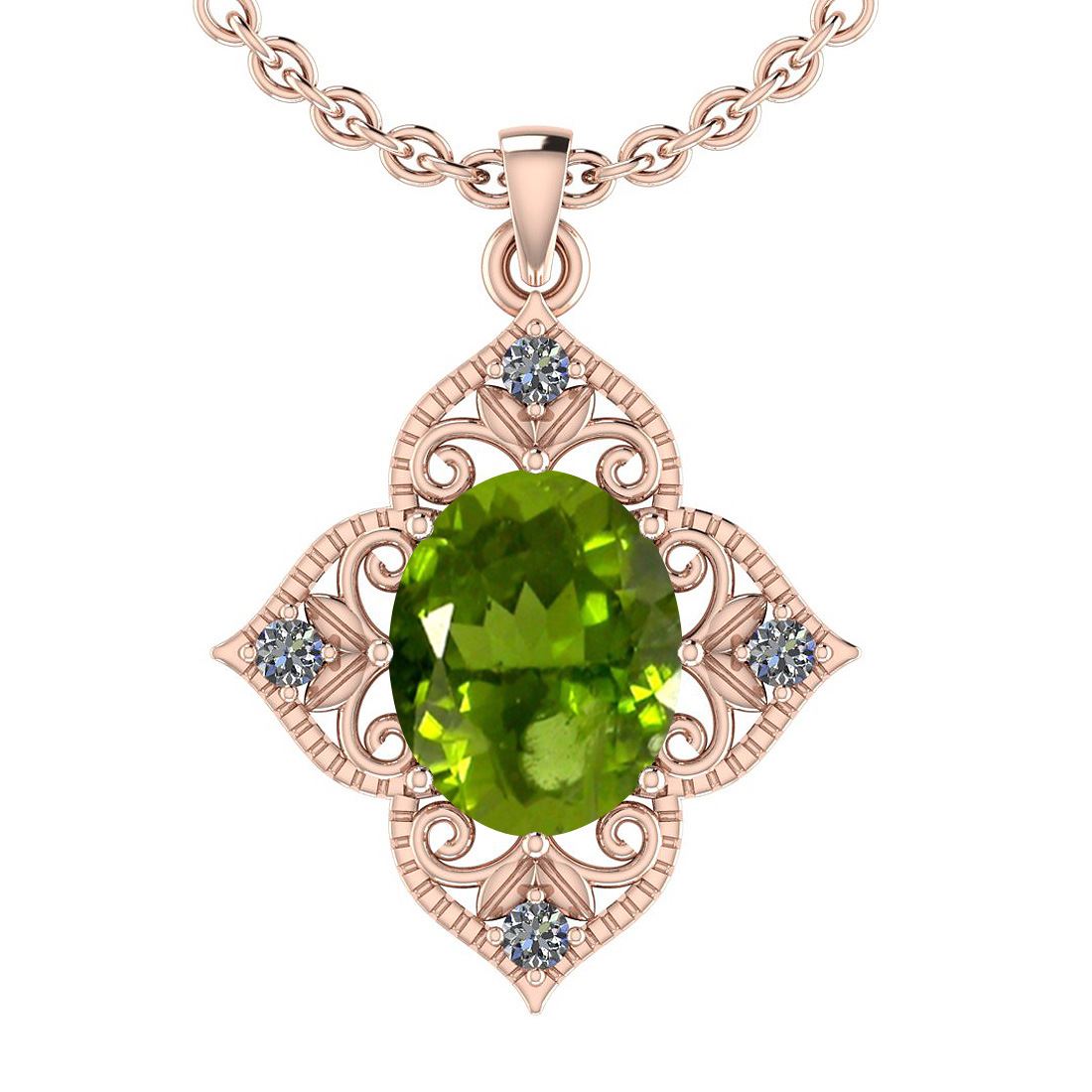 Certified 3.75 Ctw I2/I3 Peridot And Diamond 10K Rose G **|**|** Center Stone Approx Weight: 3.63 Ctw (Oval Cut) Center Stone Color: Peridot Center Stone Setting: Prong Side Stone 0.12 Ctw Side Stone Color: J-K Stone Clarity: I2/I3 Stone Setting: Prong Metal Approx Weight: 2.40 Gram 10K Rose Gold Pendant